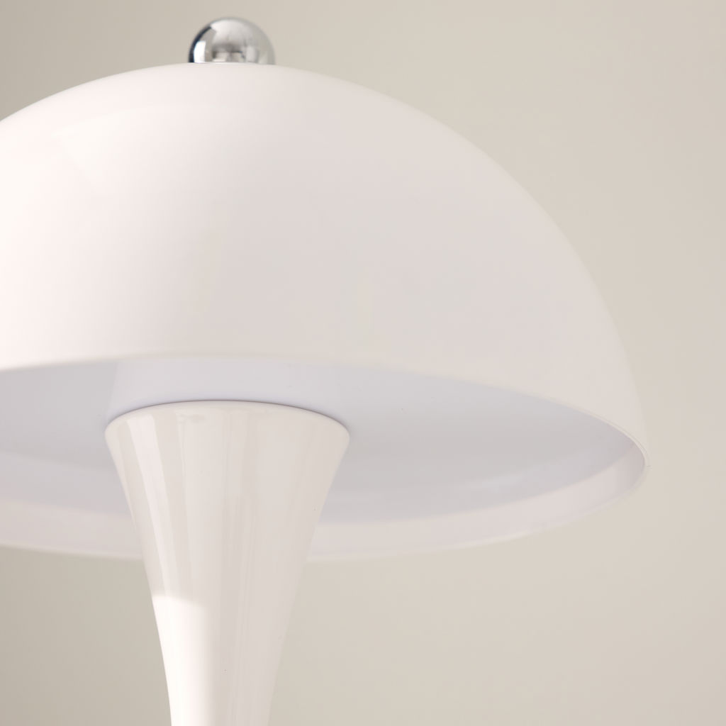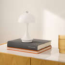 This metallic mushroom LED table lamp offers modern style and portable brilliance.