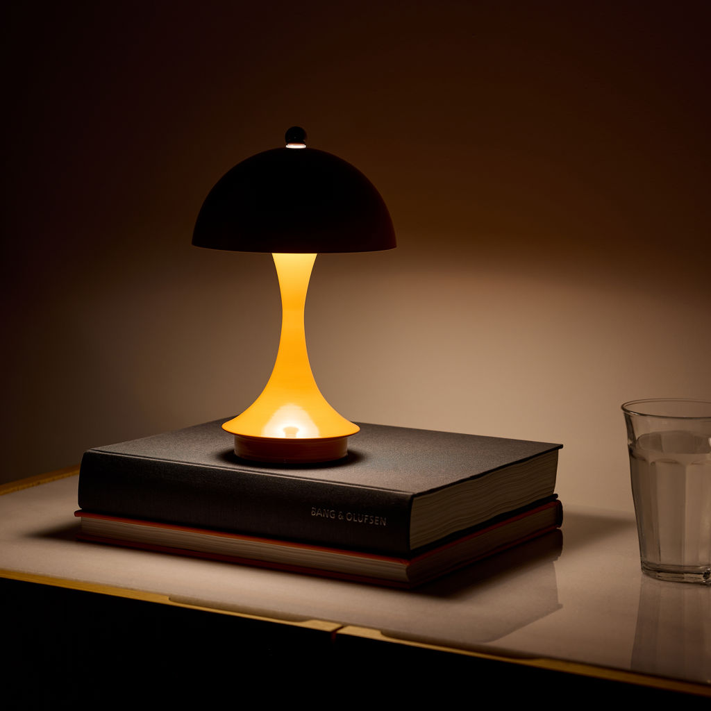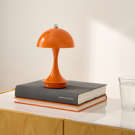 This metallic mushroom LED table lamp offers modern style and portable brilliance.