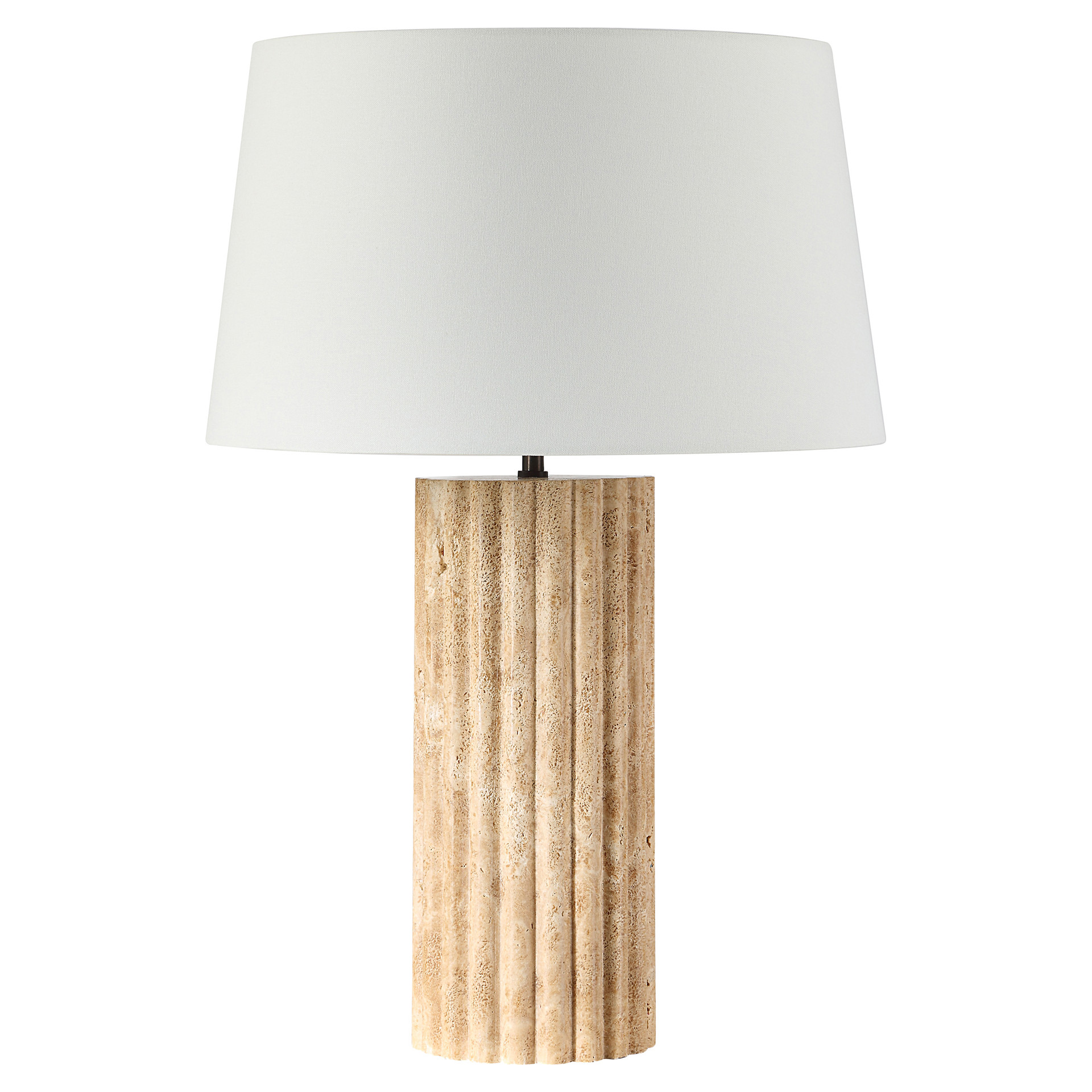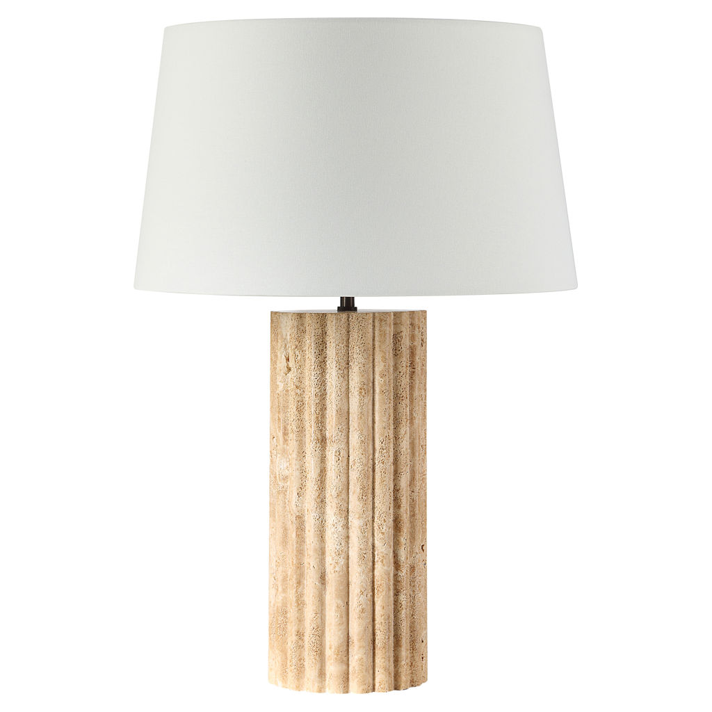 Made with a travertine body, this table lamp puts the unique swirls and patterns of this distinctive stone on display to add a touch of natural elegance to any space.