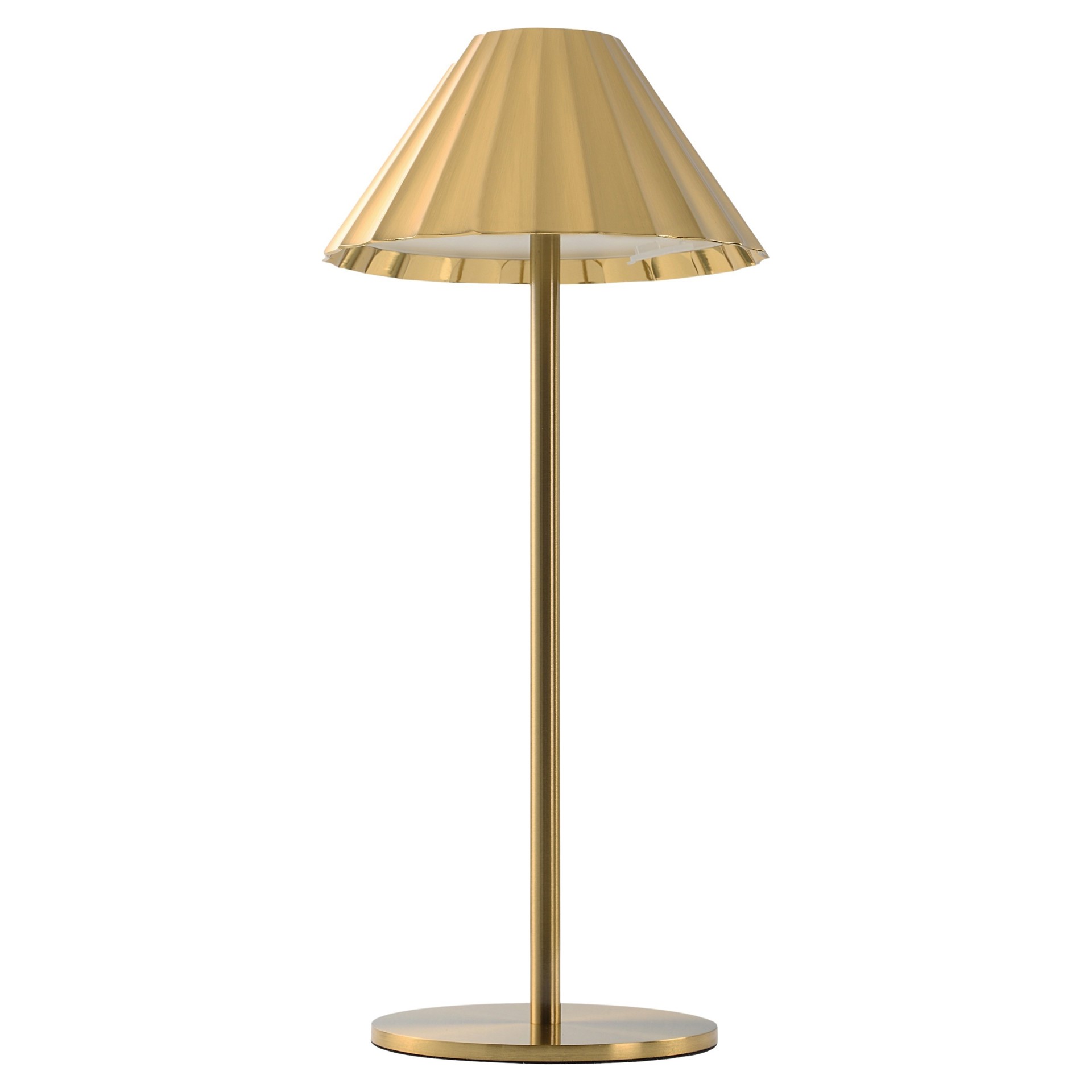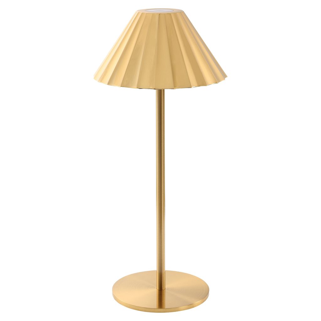 Featuring sleek lines, a pleated acrylic lampshade, and an on-trend all-over gold nickel-plated finish, this light turns on and off with a simple tap to elevate the look of any interior.