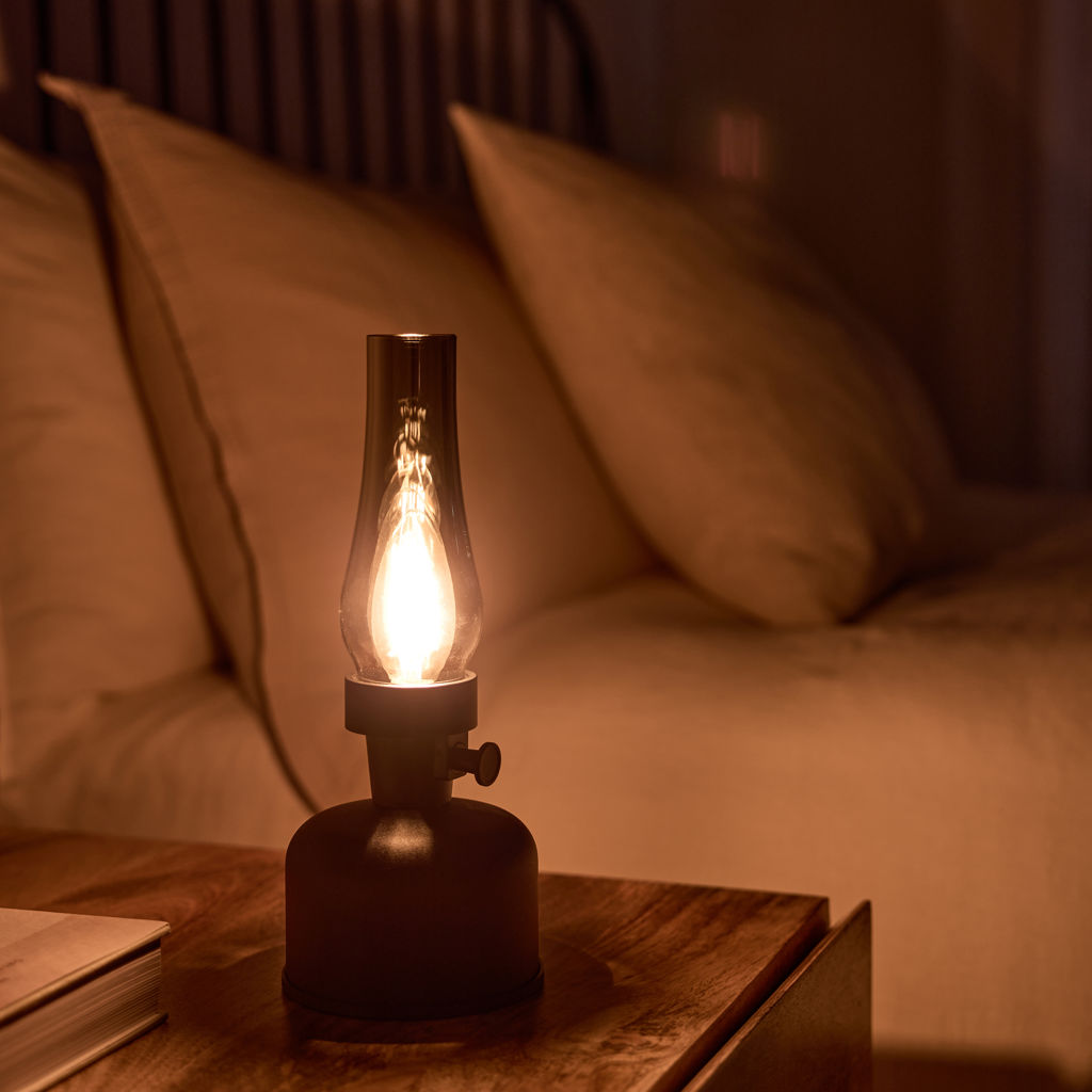 Inspired by vintage oil lamps, this USB-rechargeable lantern features a dimmable Edison-style LED bulb, allowing you to set the perfect ambiance with a simple turn of the knob.