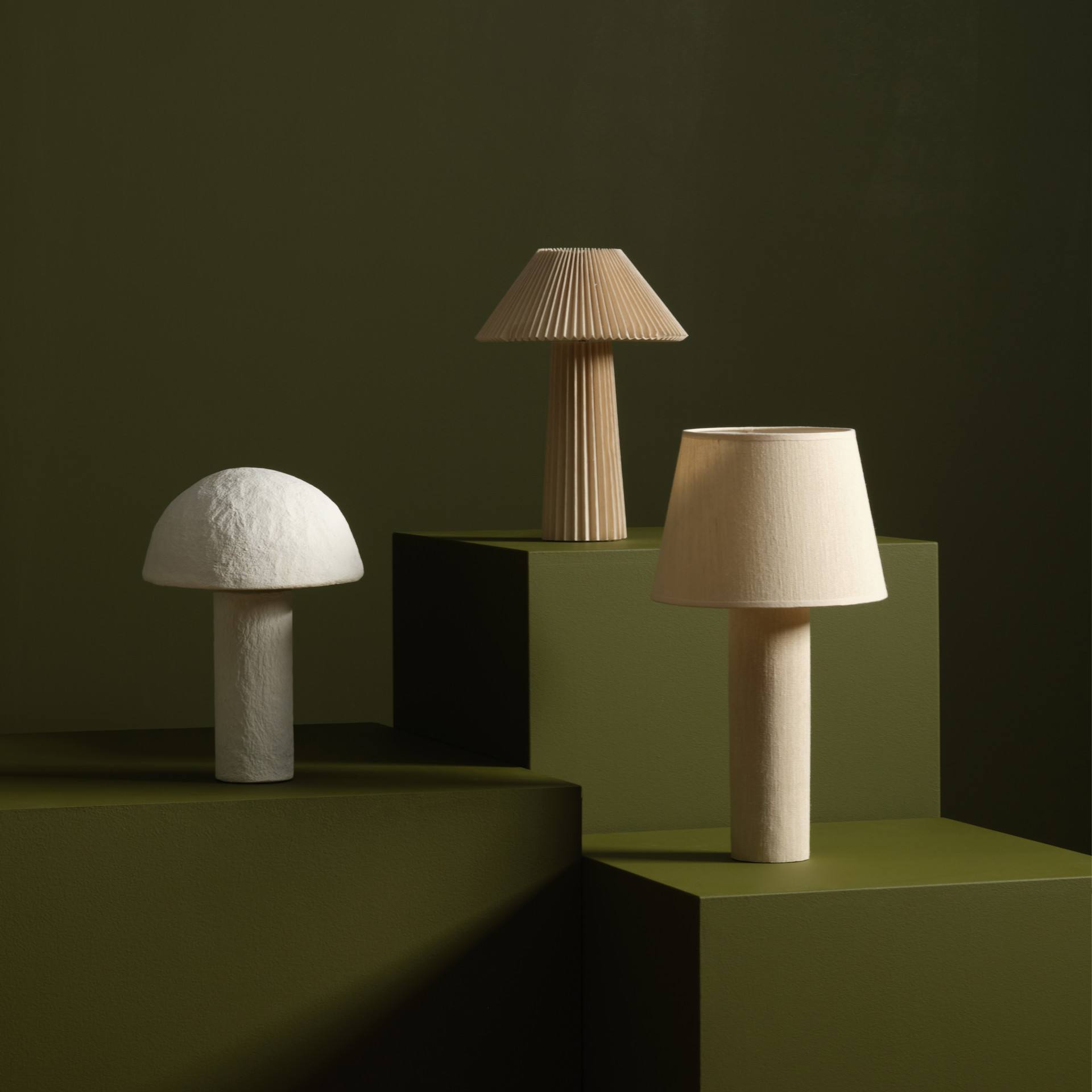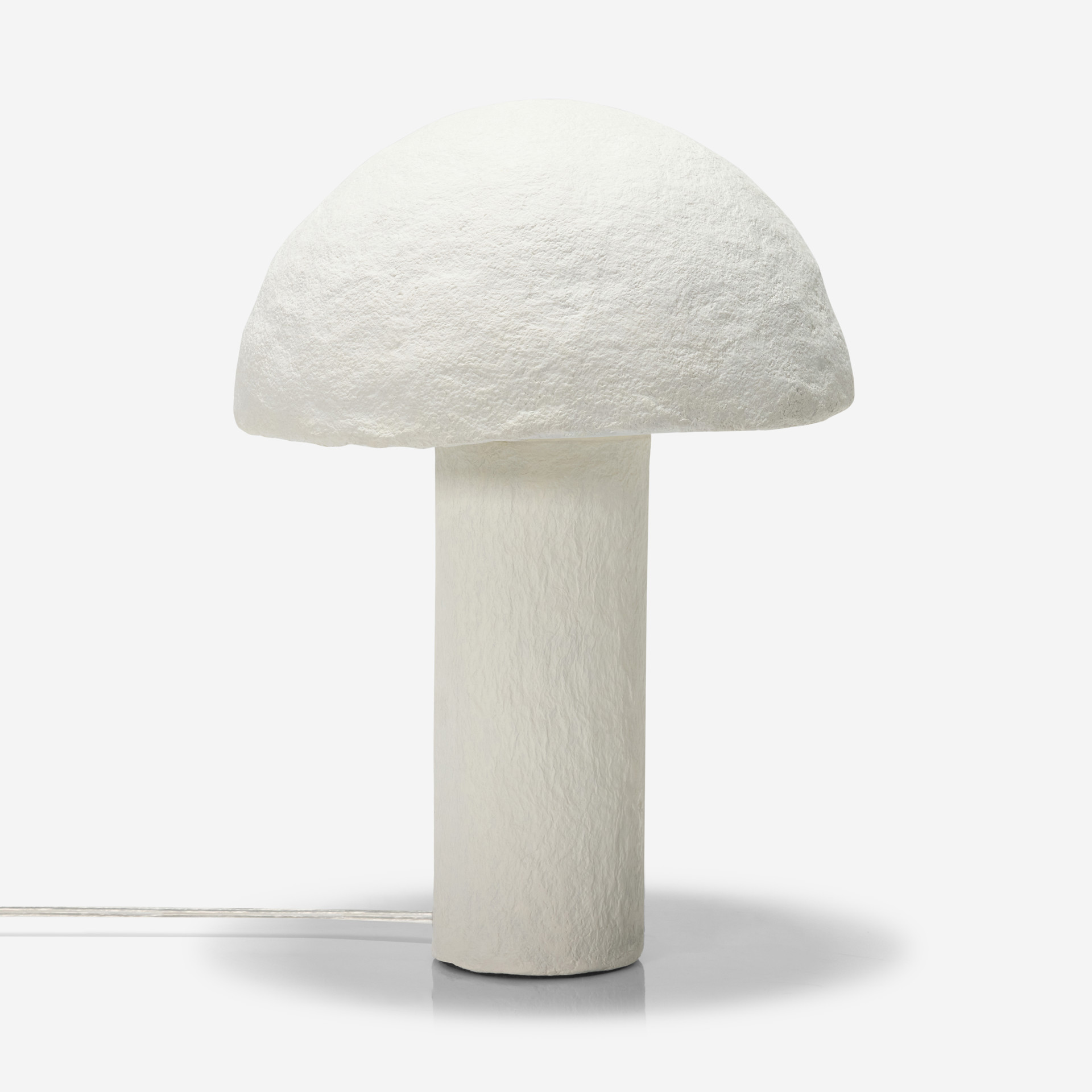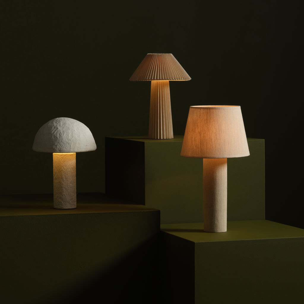 Its sculpted shade, featuring a paper-mache–like finish, casts a warm, gentle light while adding inviting texture to your space.