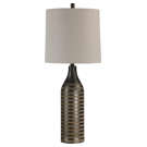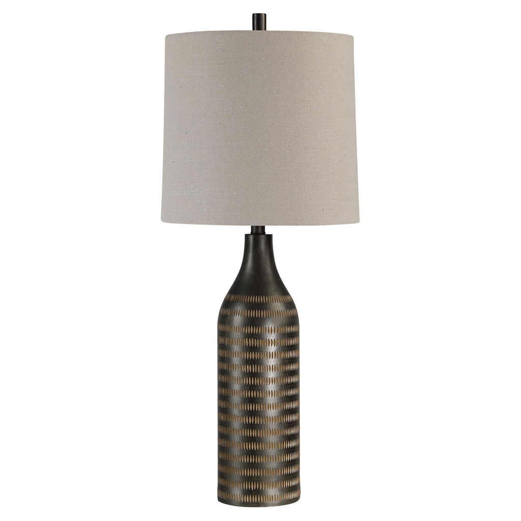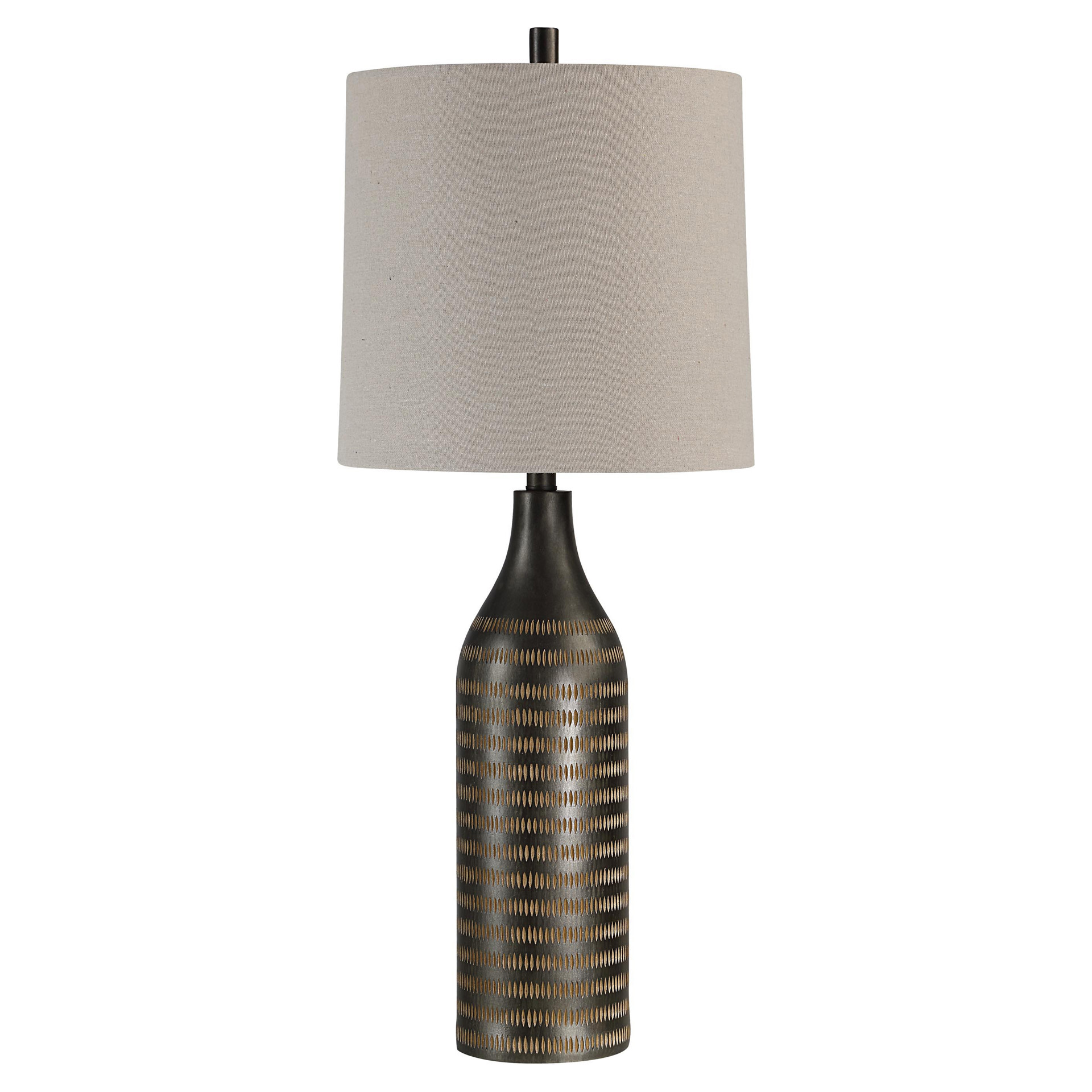 Perfect for adding a finishing touch to your space, this textured lamp features a long and lean body with a soothing cream finish, that's topped off with a clean-lined oatmeal linen drum shade.