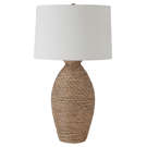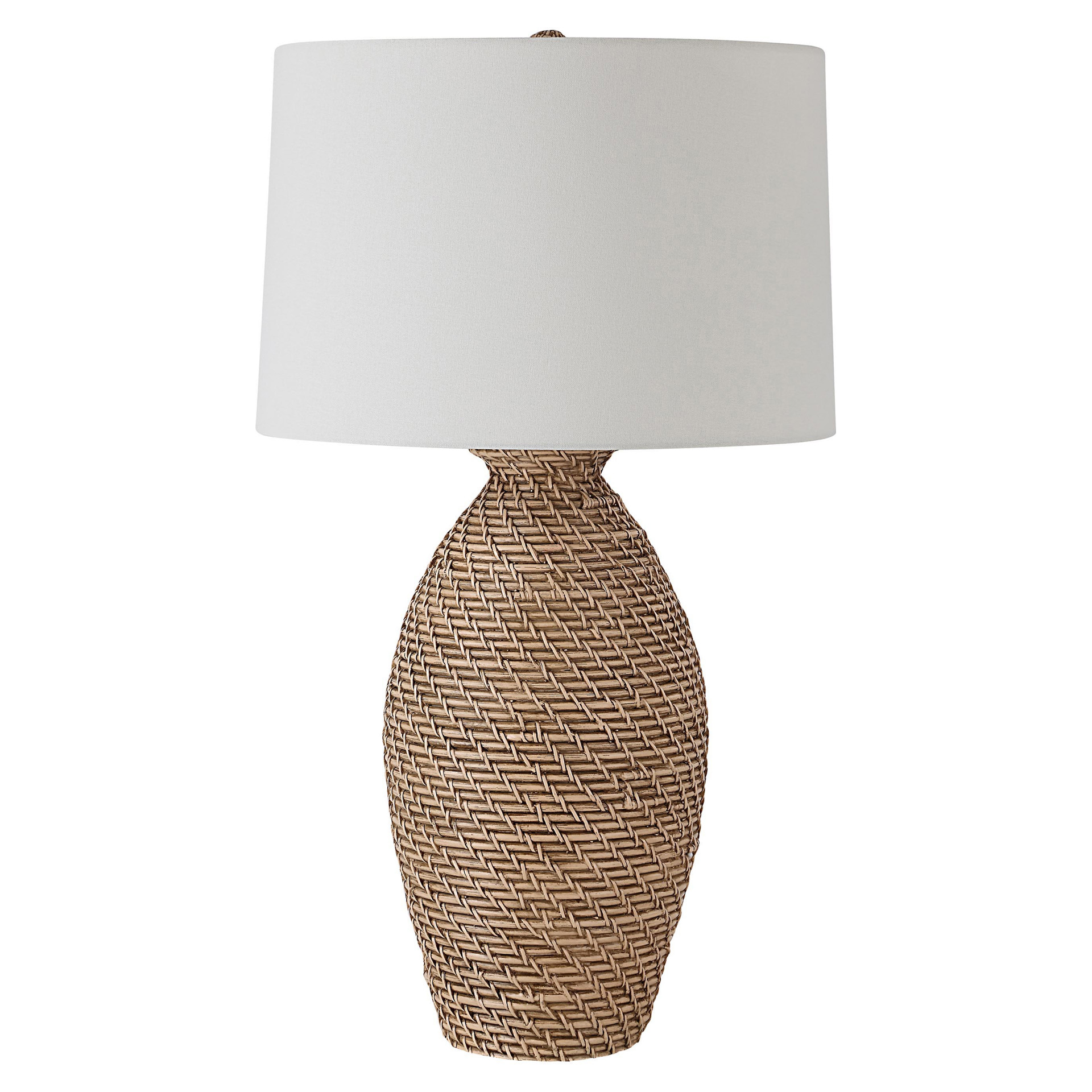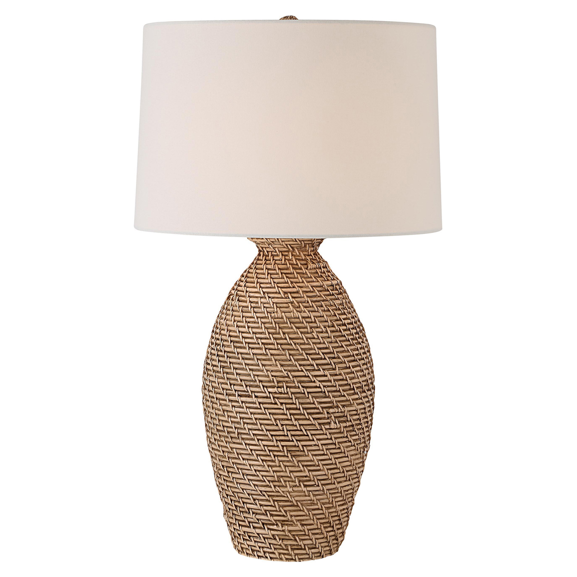Designed with a realistic faux rattan finish on its curvaceous body, this lamp will make a big impact in any room.