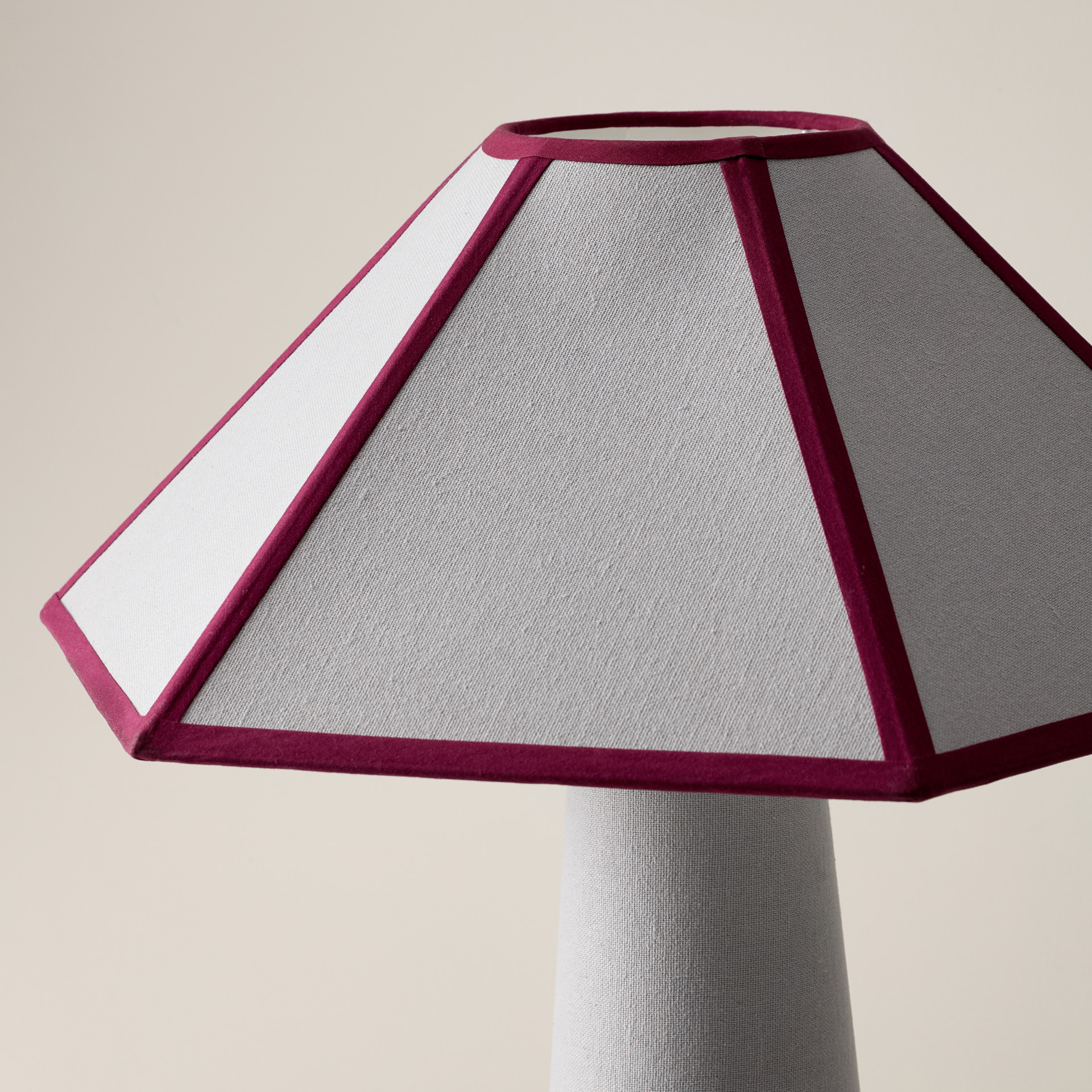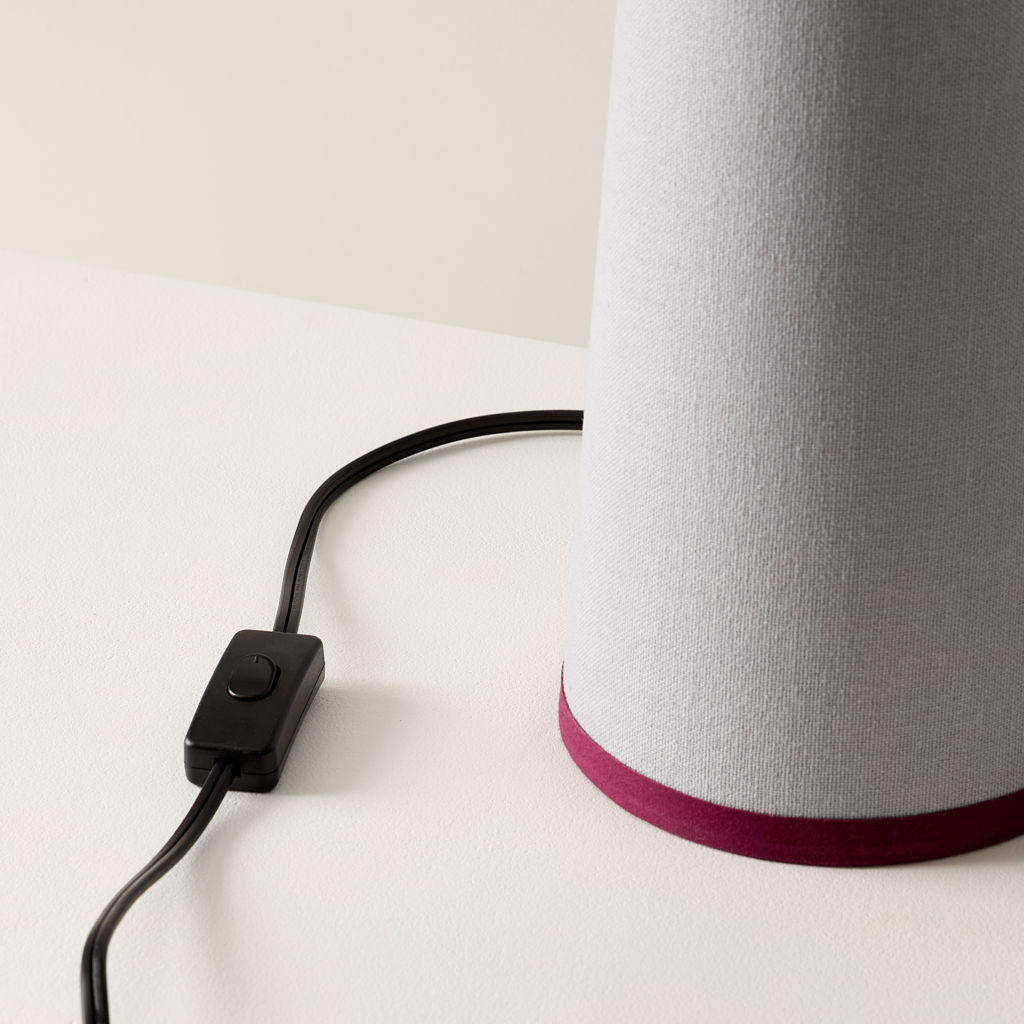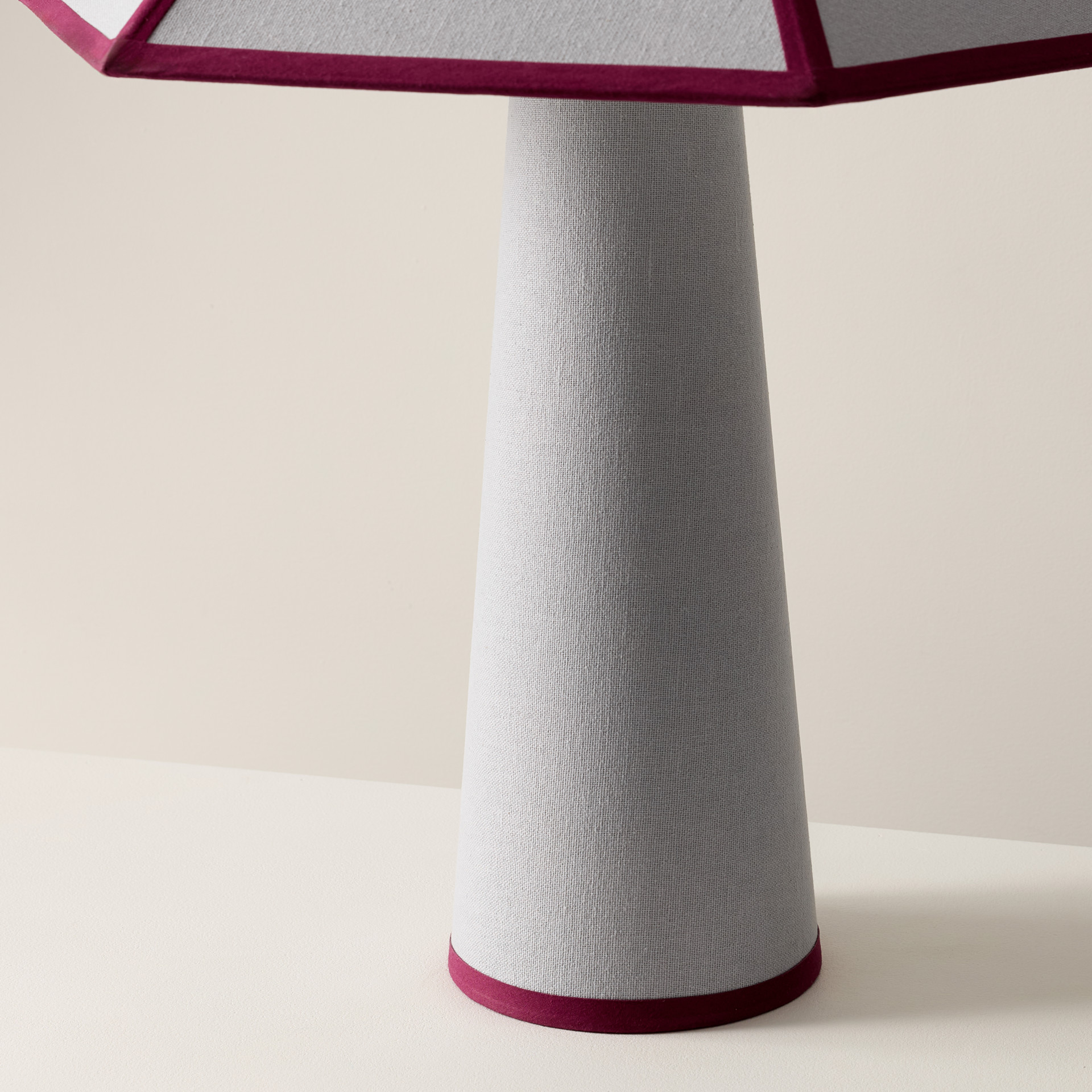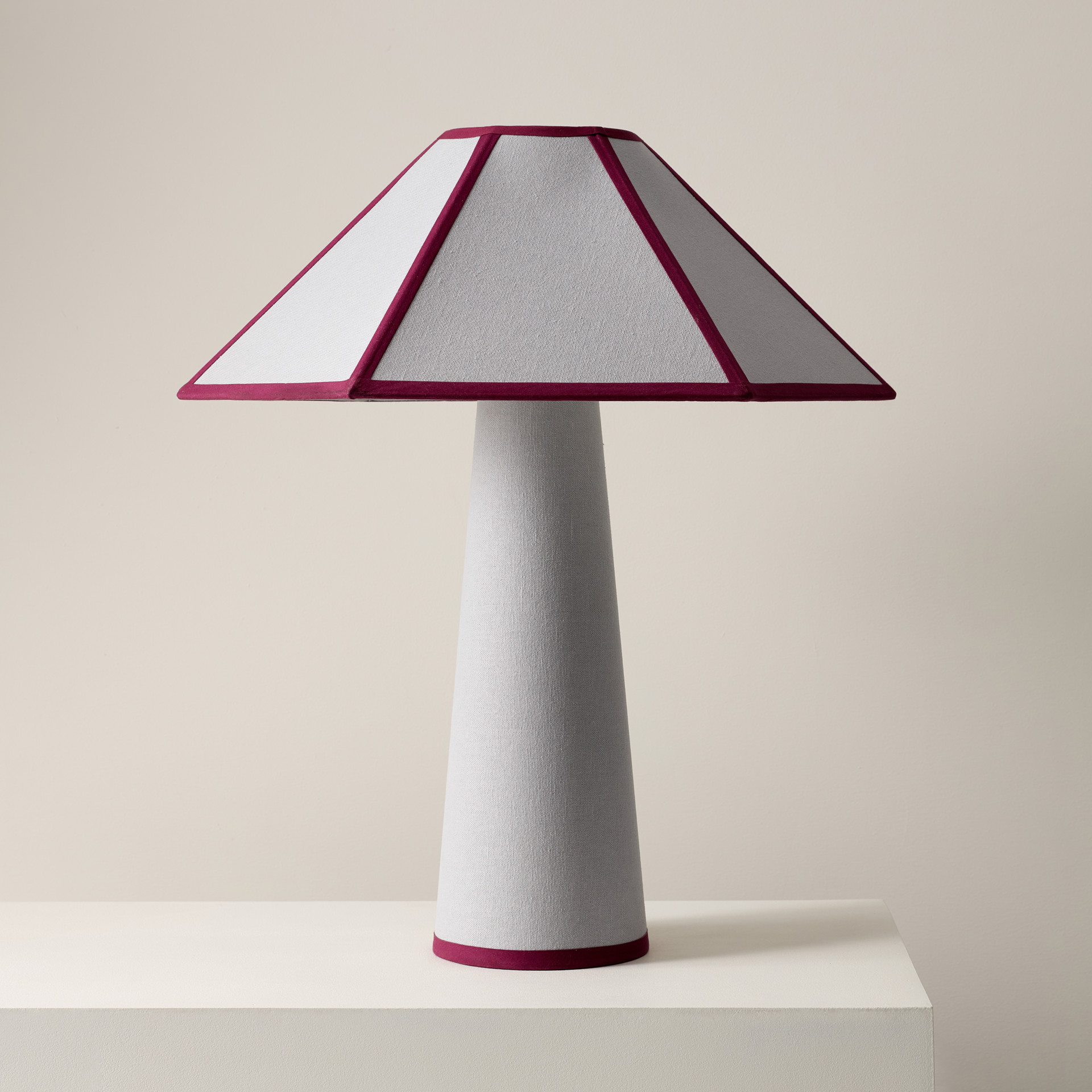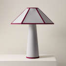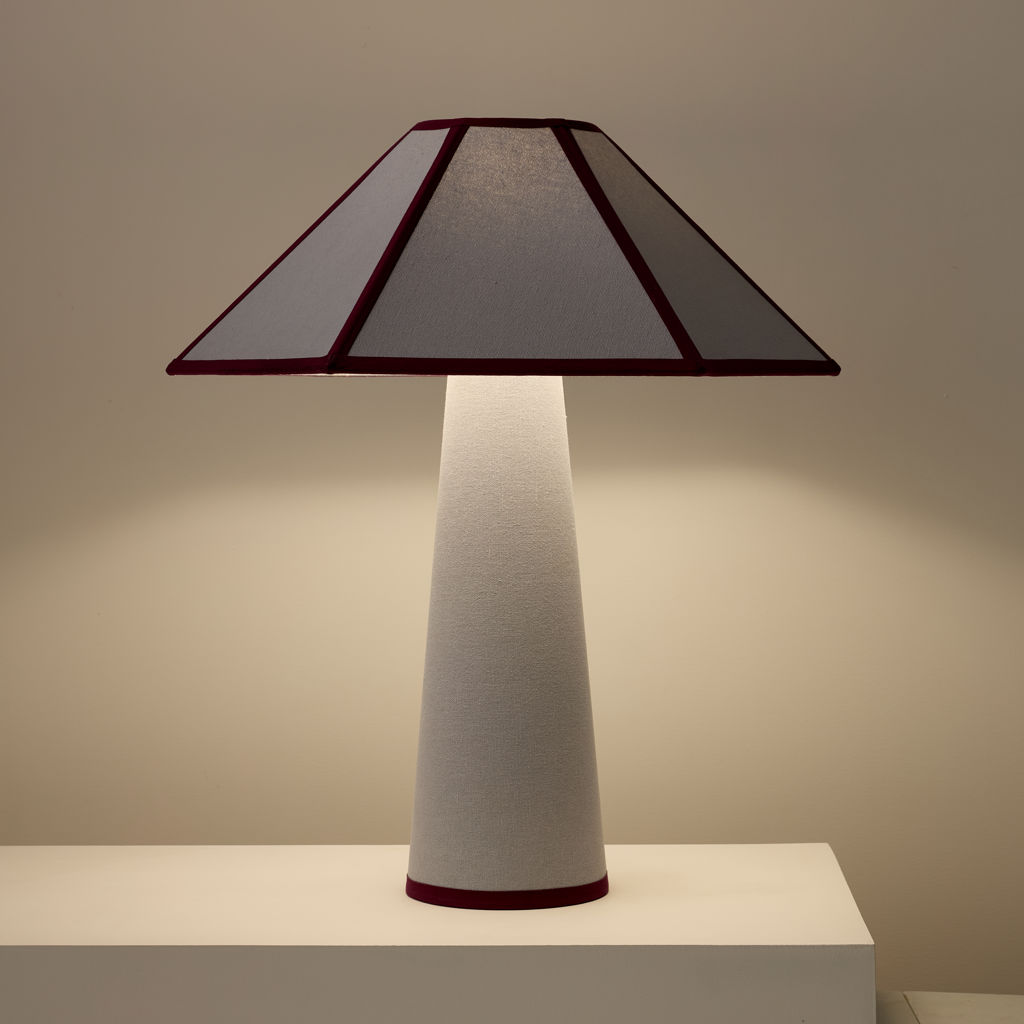 Wrapped head to toe in soft cotton fabric with tonal piping that trims the shade like fine detailing, Gigi’s tailored, sculptural, and surprisingly warm.