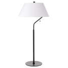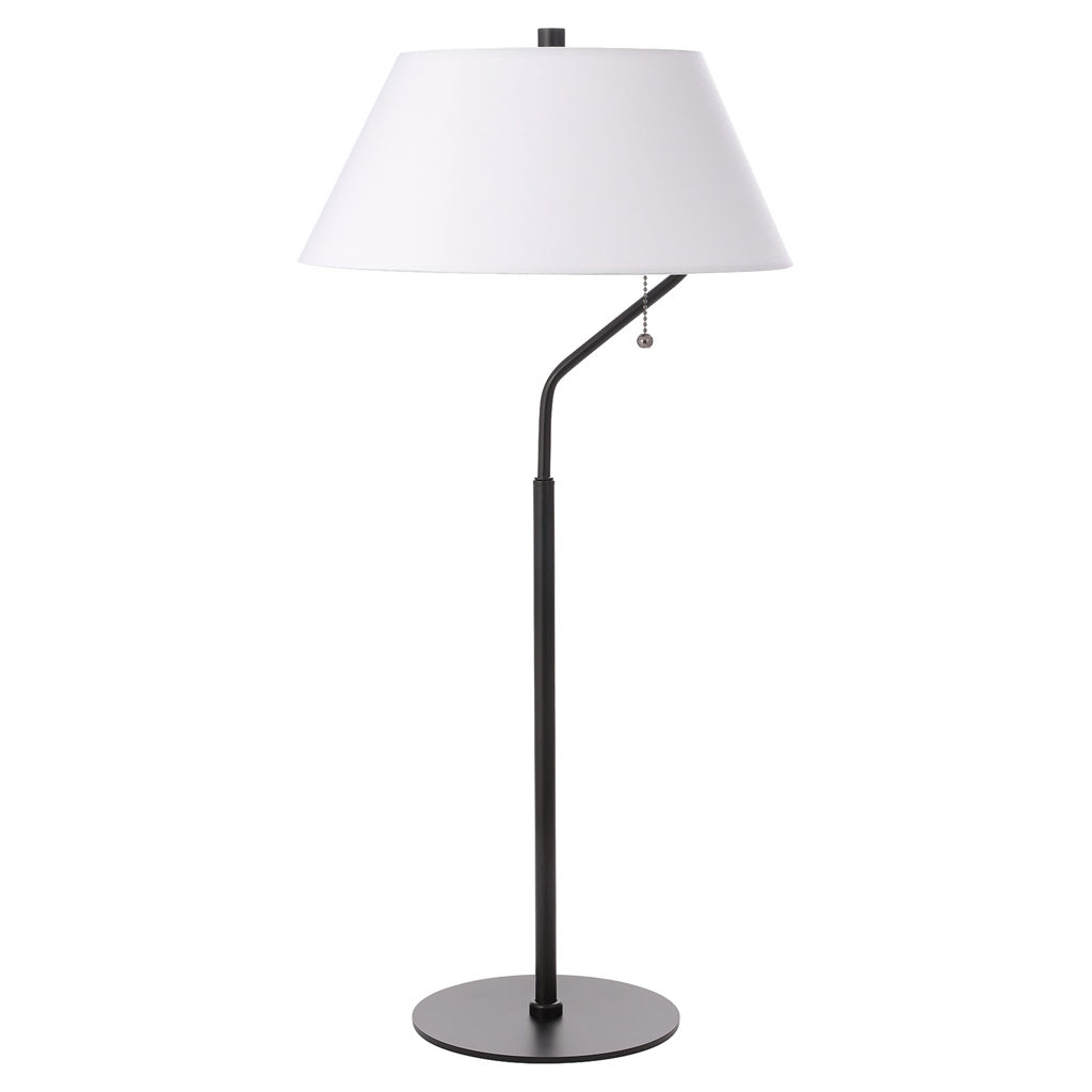Brighten your space with this sleek matte black 1-light table lamp, featuring a crisp white fabric shade that delivers warm, soft illumination.