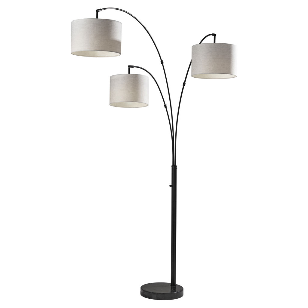 A smart and stylish way to light a living room area, the Bowery 3-Arm Arc Lamp provides overhead lighting that can be controlled with three adjustable shade arms.