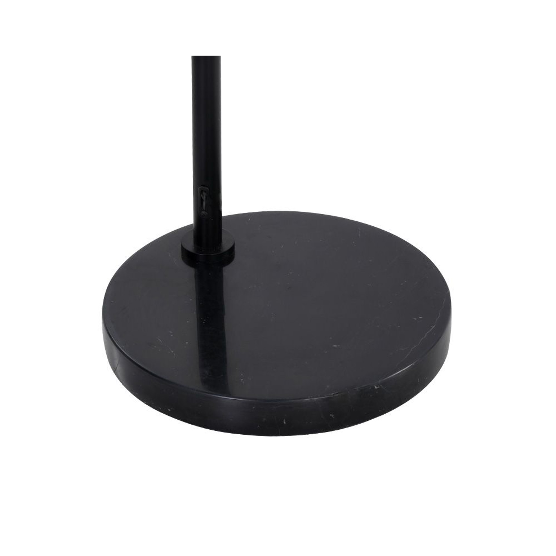 Features a black iron globe shade with a black marble base. As marble is a natural material, the unique veins, pitting, cracks, micro-cracks and color variations all add to the uniqueness and beauty of each piece.