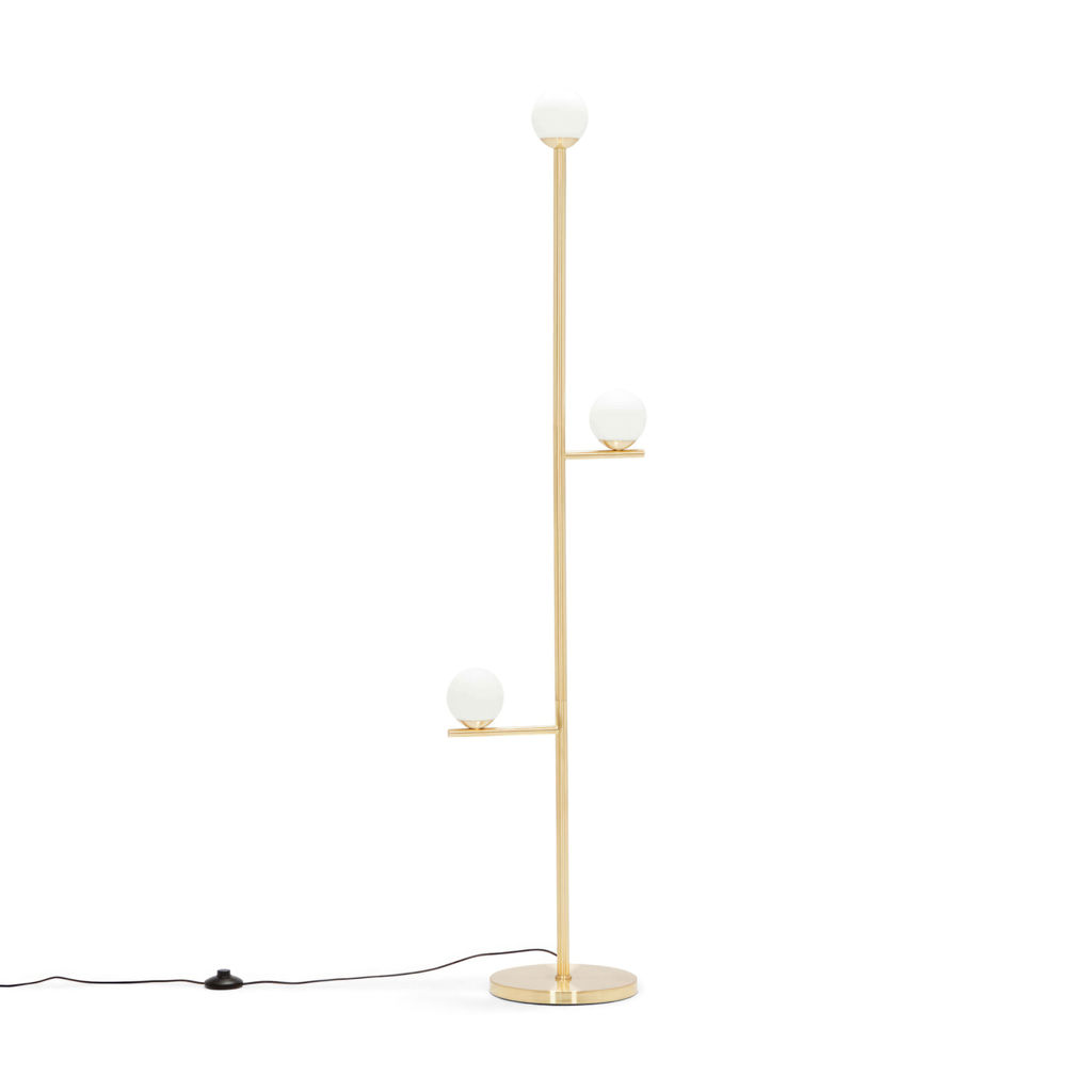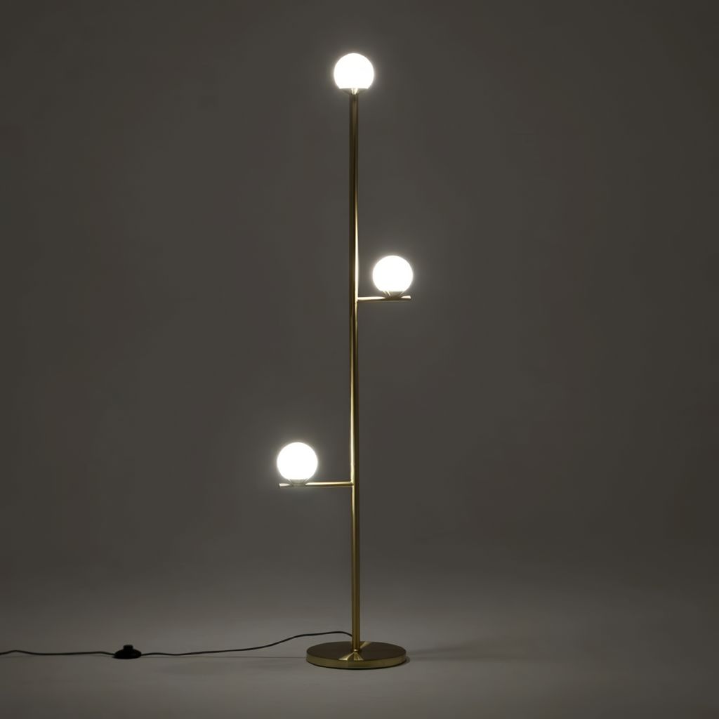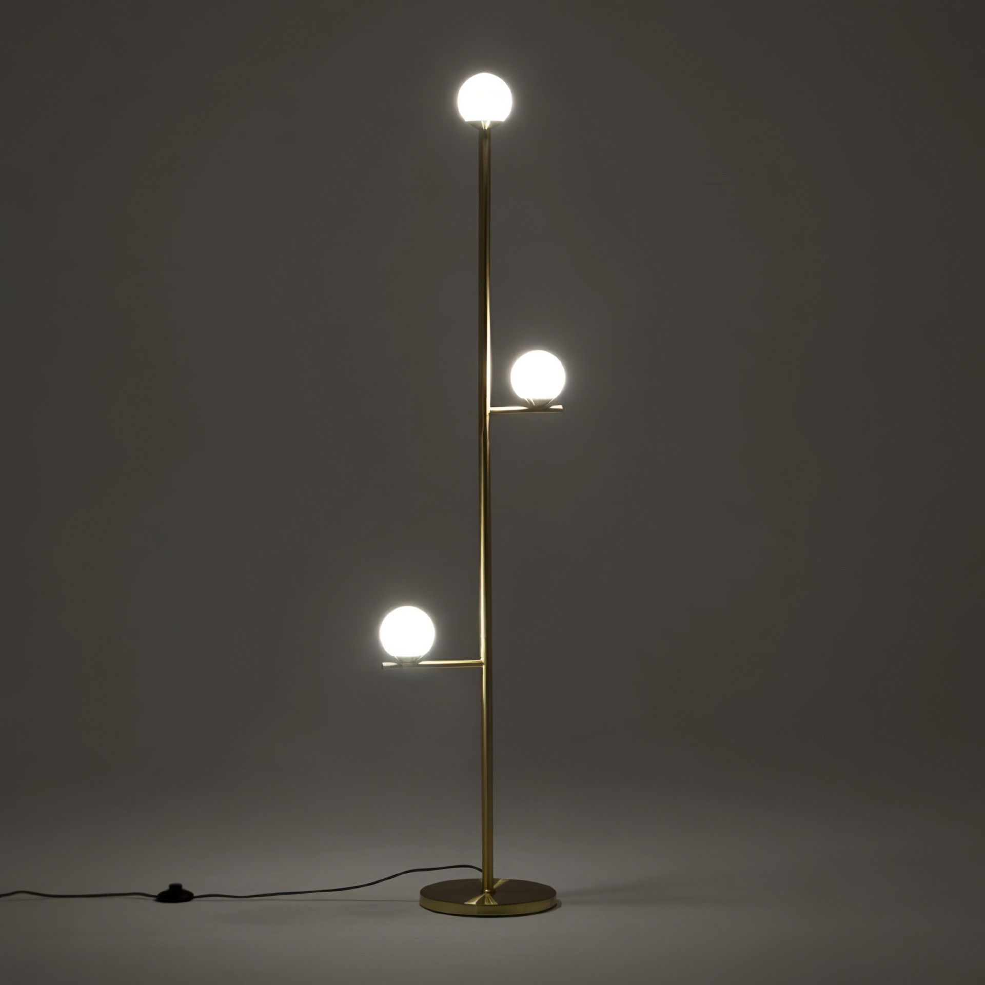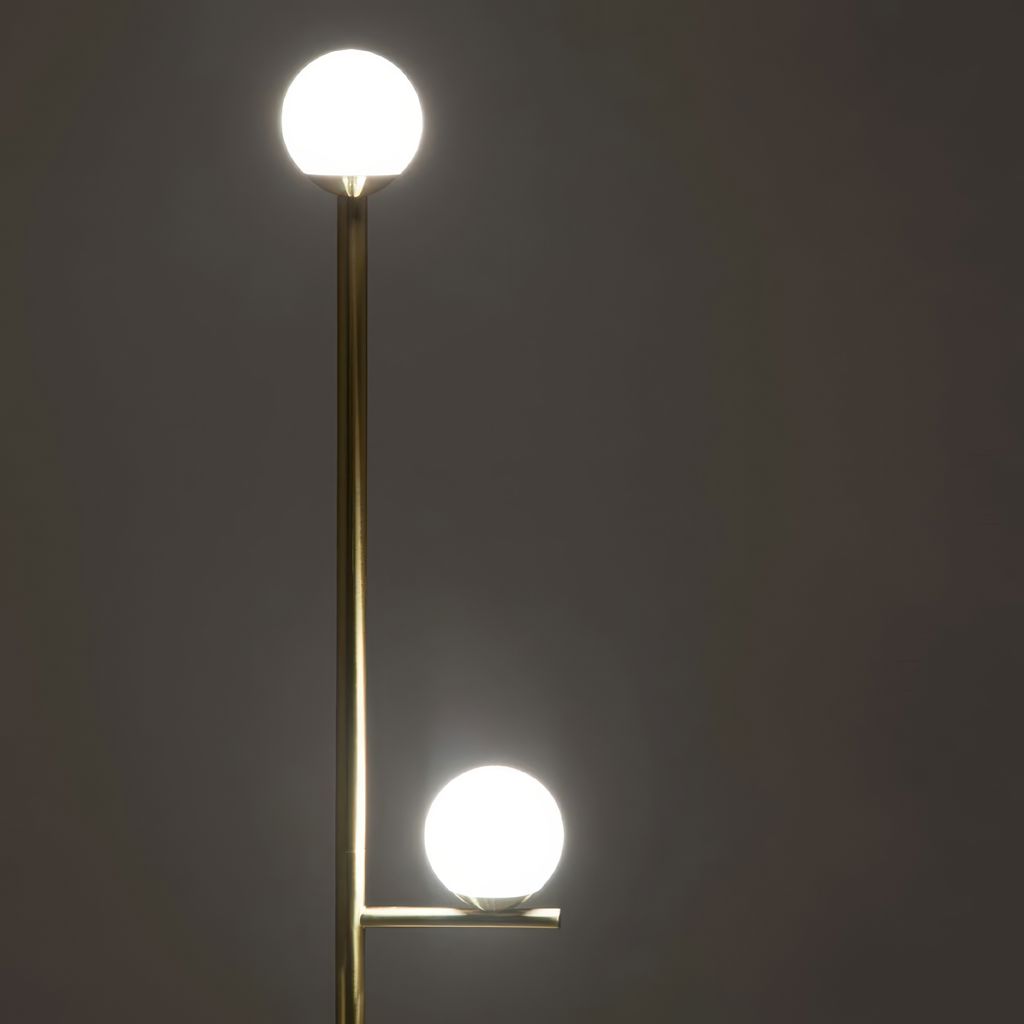 The stem floor lamp features simple geometric shapes reflected in artful balance. Adds minimalist ambiance through the soft glow created by its frosted shade.