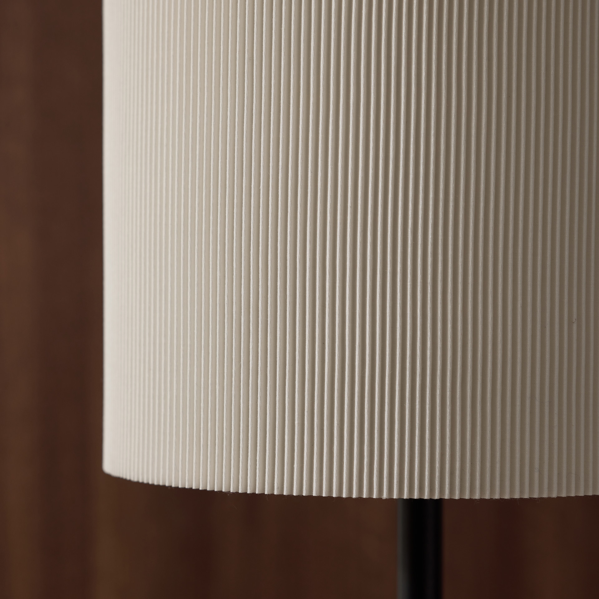 Introducing the Eleanor Floor Lamp, where timeless elegance meets contemporary design. This floor lamp features a sleek black finish that adds a touch of sophistication to your living space. Its tall drum-shaped off-white knife pleated fabric shade radiates classic charm while delivering ample illumination.