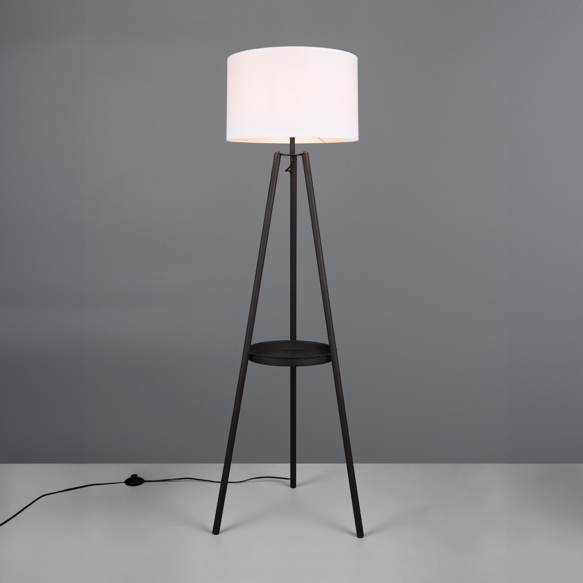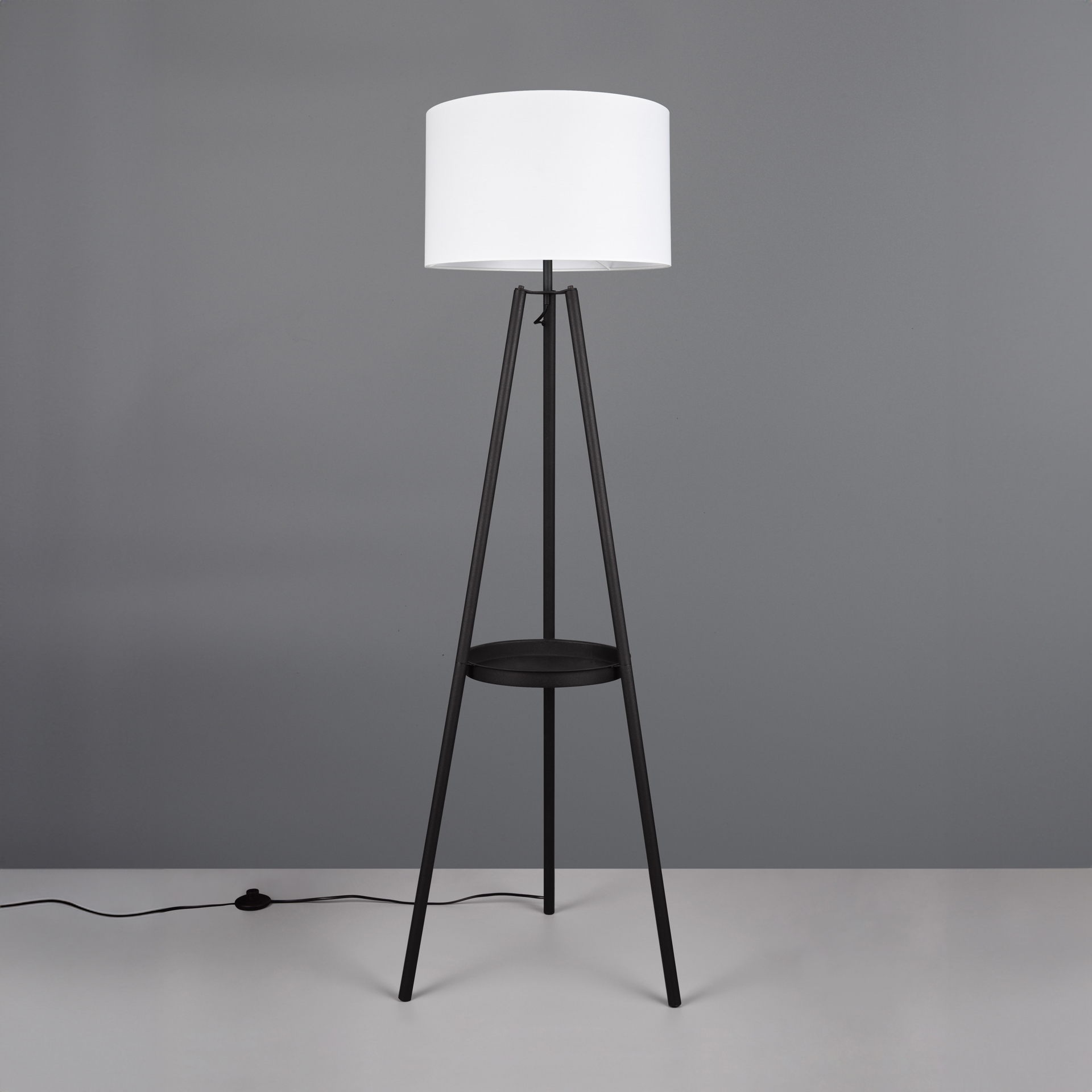 With its stylish fabric shade, the three-legged floor lamp creates a cosy island of light that invites you to linger.