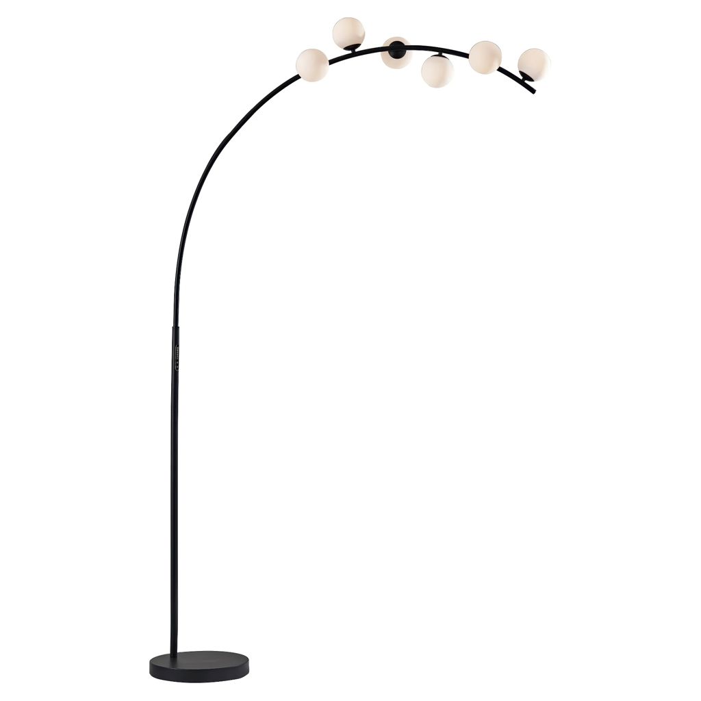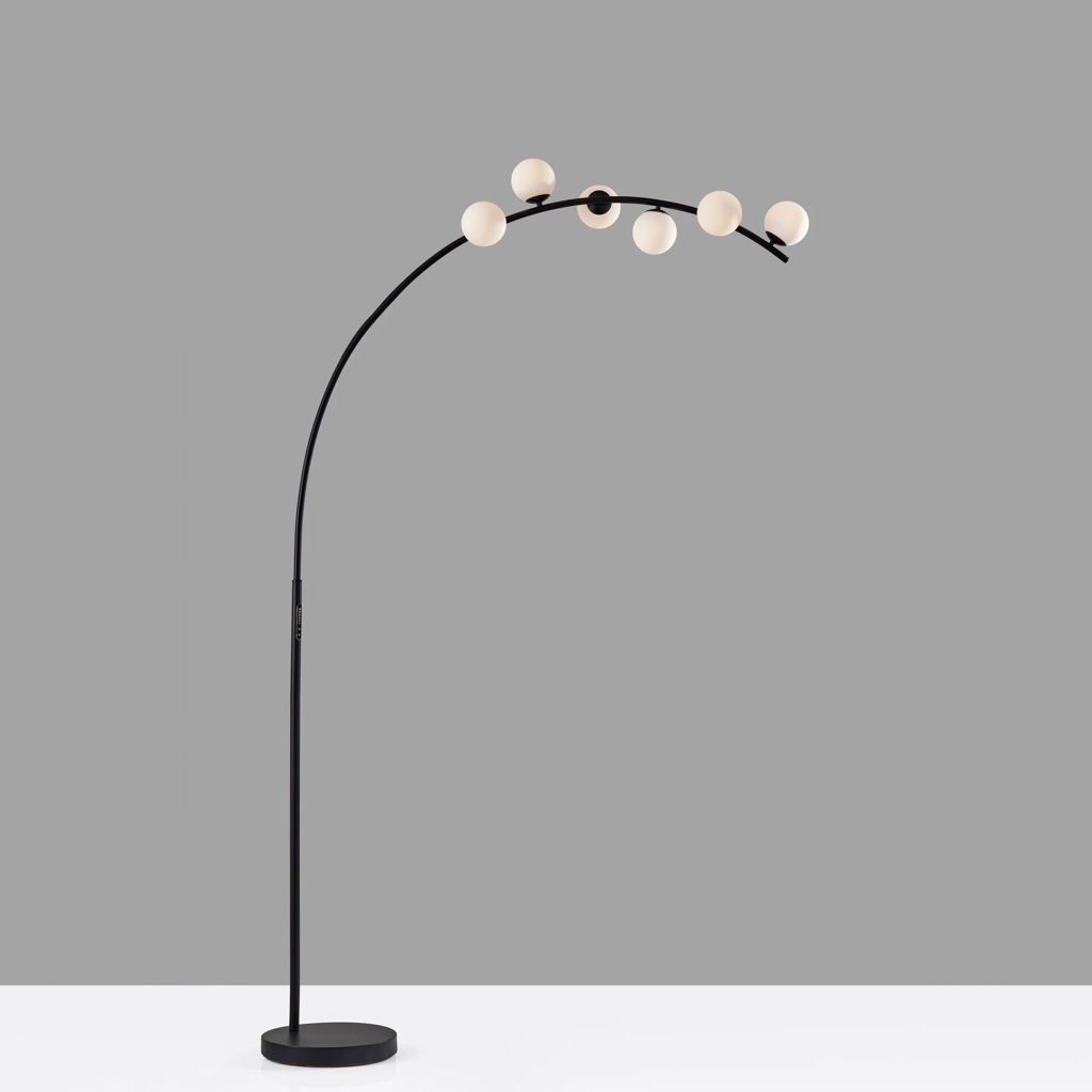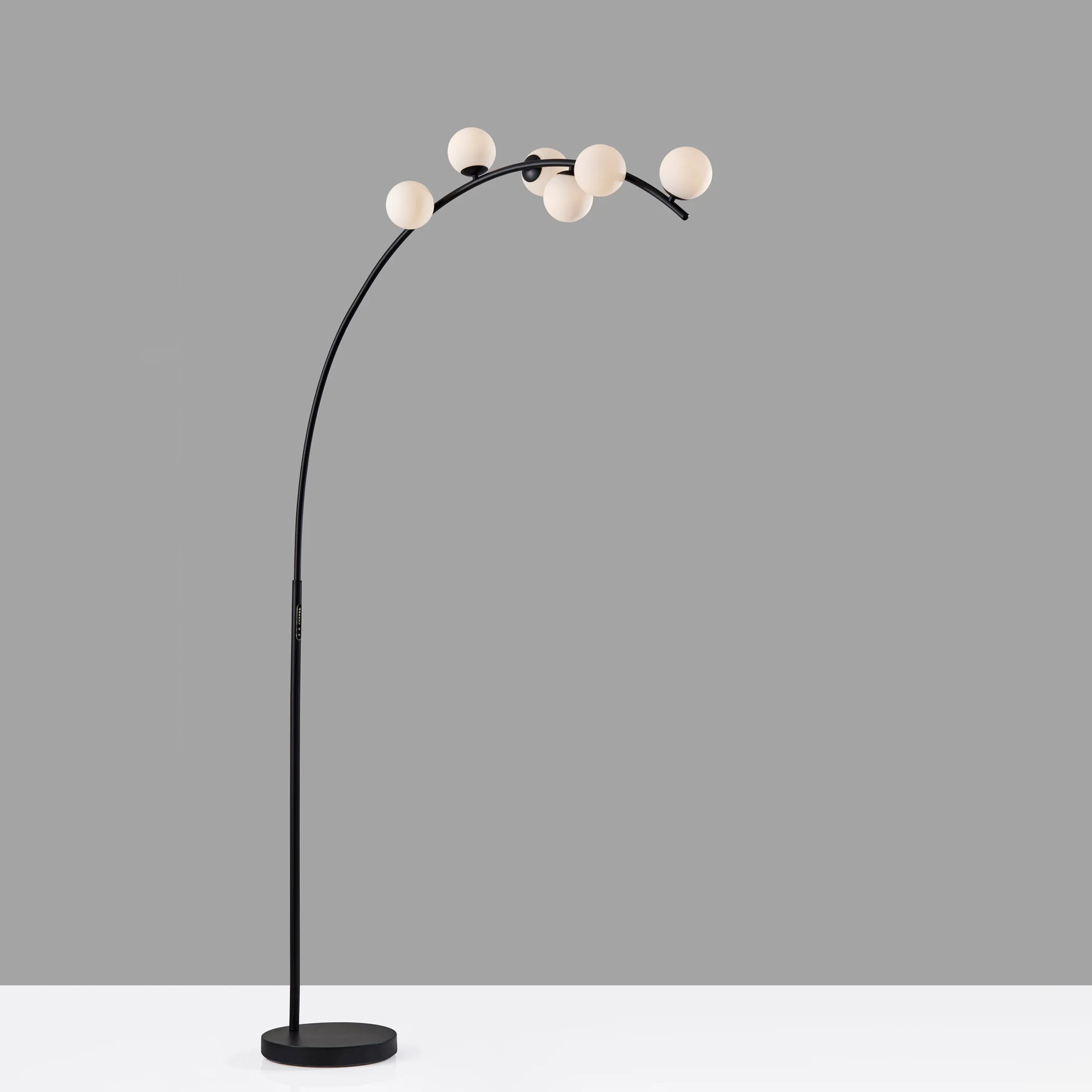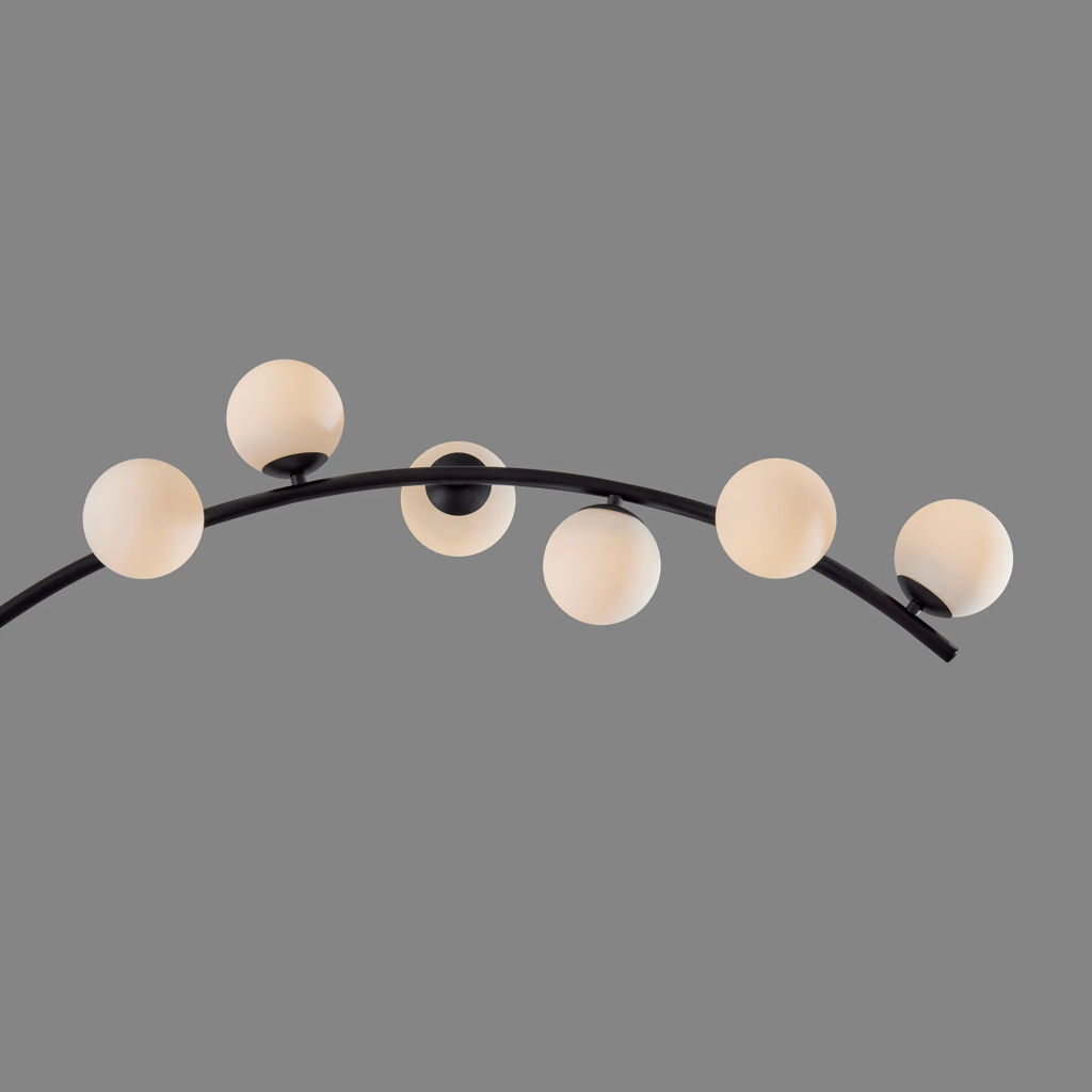 Elevate your décor with the Ronan LED Arc Lamp, a masterpiece of contemporary design and innovation. Boasting a striking black finish and Matte white opal glass globe-shaped shades, this lamp exudes modern elegance at every angle.