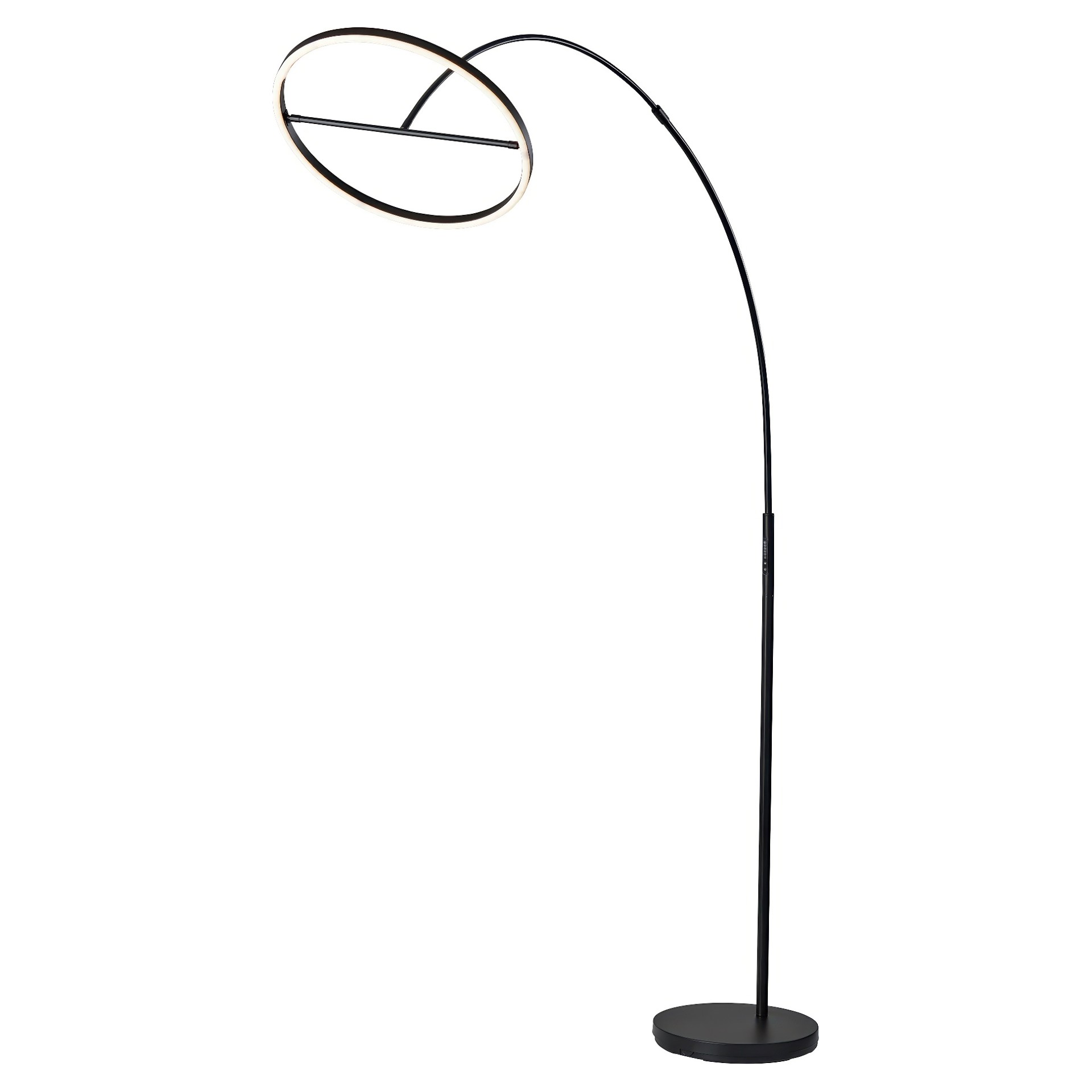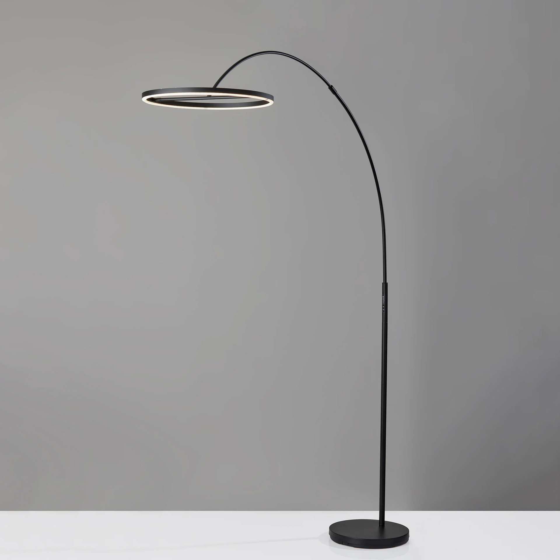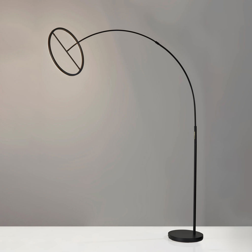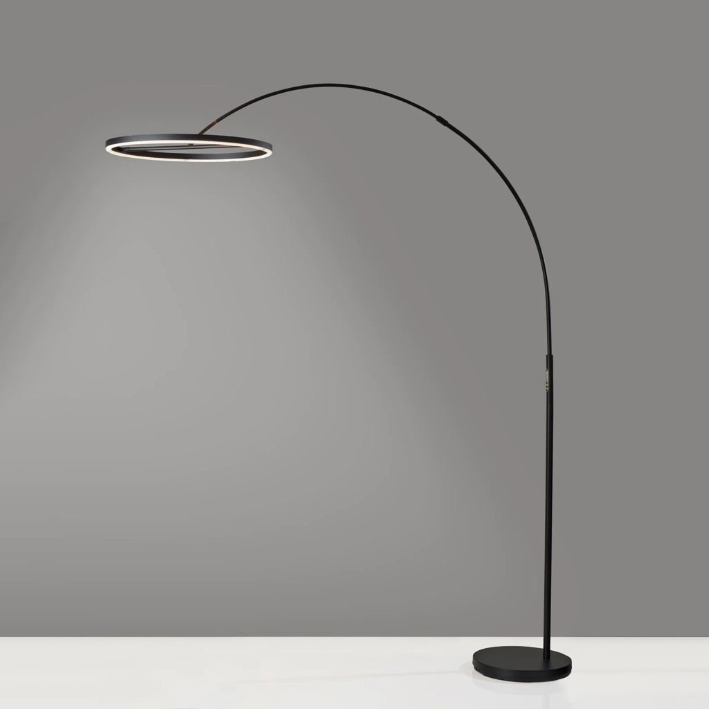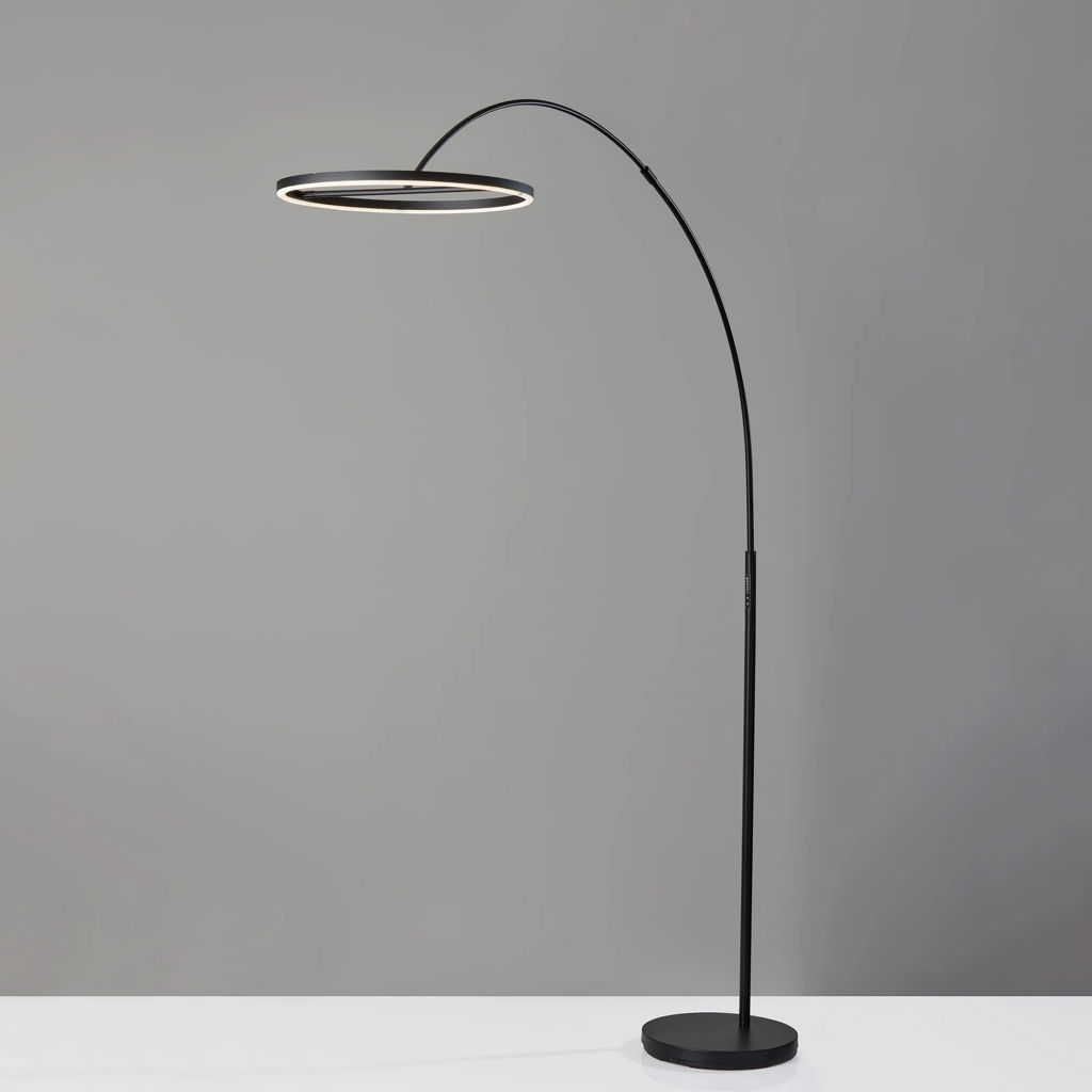 Introducing the Falcon LED Arc Lamp, a striking fusion of contemporary design and intelligent illumination. This arc lamp boasts a sleek black finish that embodies modern elegance. Its distinctive black metal ring-shaped shade is paired with a frosted rubber diffuser, delivering a captivating and highly functional lighting solution.