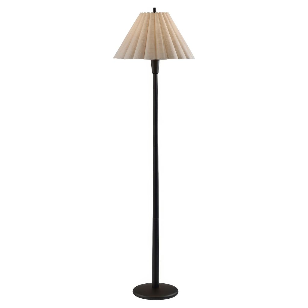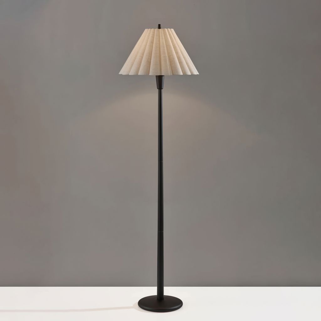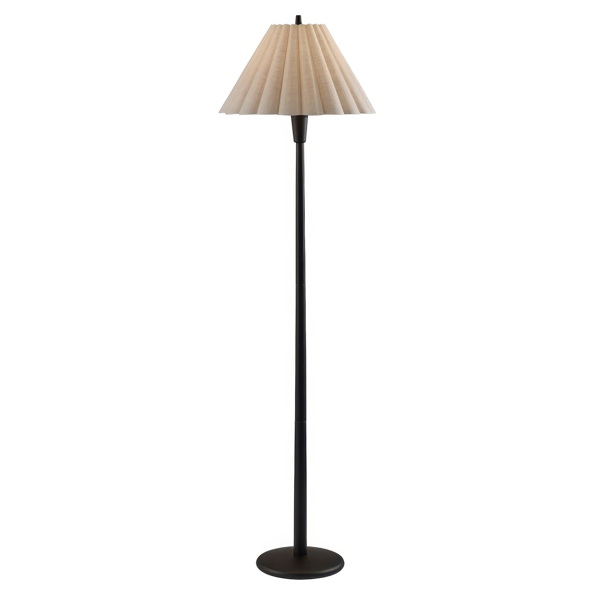 Introducing the Scallop Floor Lamp, a statement piece that combines modern sophistication with timeless charm. Featuring a sleek black wood base and a textured cream scalloped fabric shade, this lamp adds an elegant touch to any room.