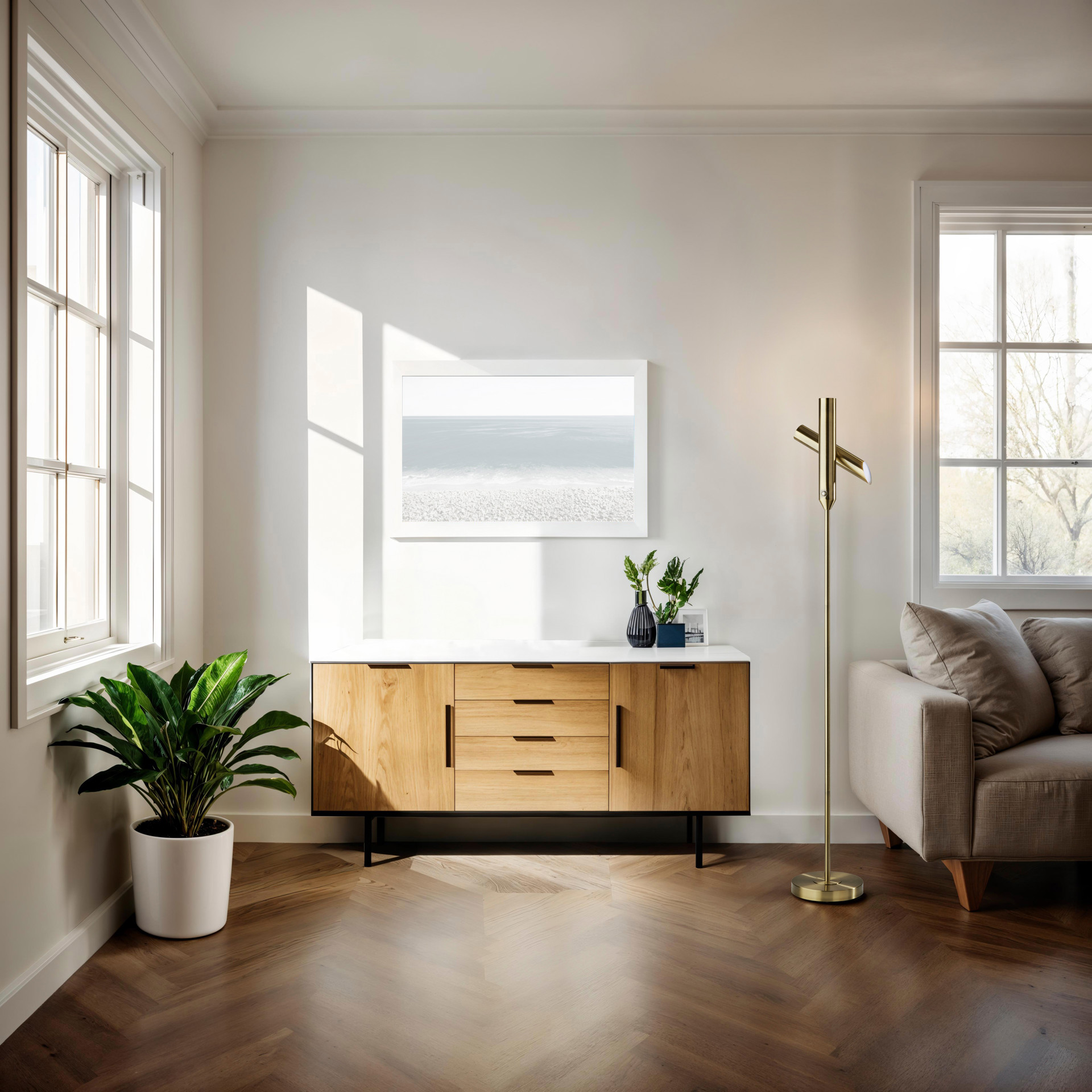 What makes this floor lamp truly unique is its outstanding versatility: the adjustable metal shade can be directed upward for ambient lighting or downward for focused illumination, adapting effortlessly to all your lighting needs.