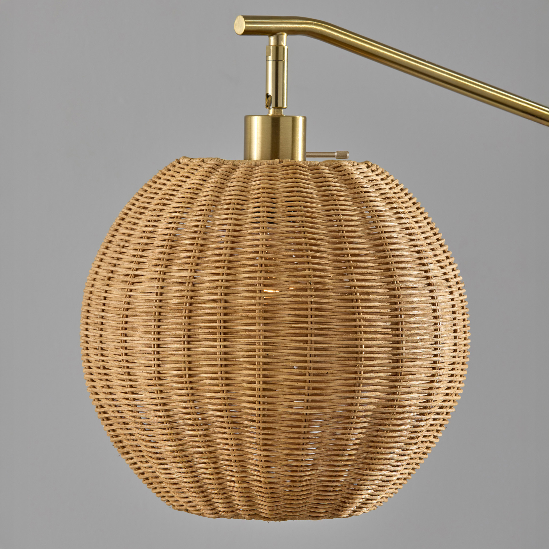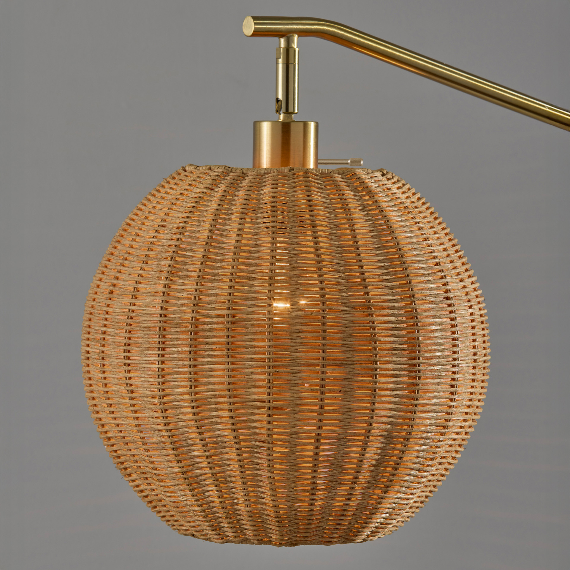The spherical brown rattan shade adds warmth and organic charm, diffusing a soft and welcoming light.