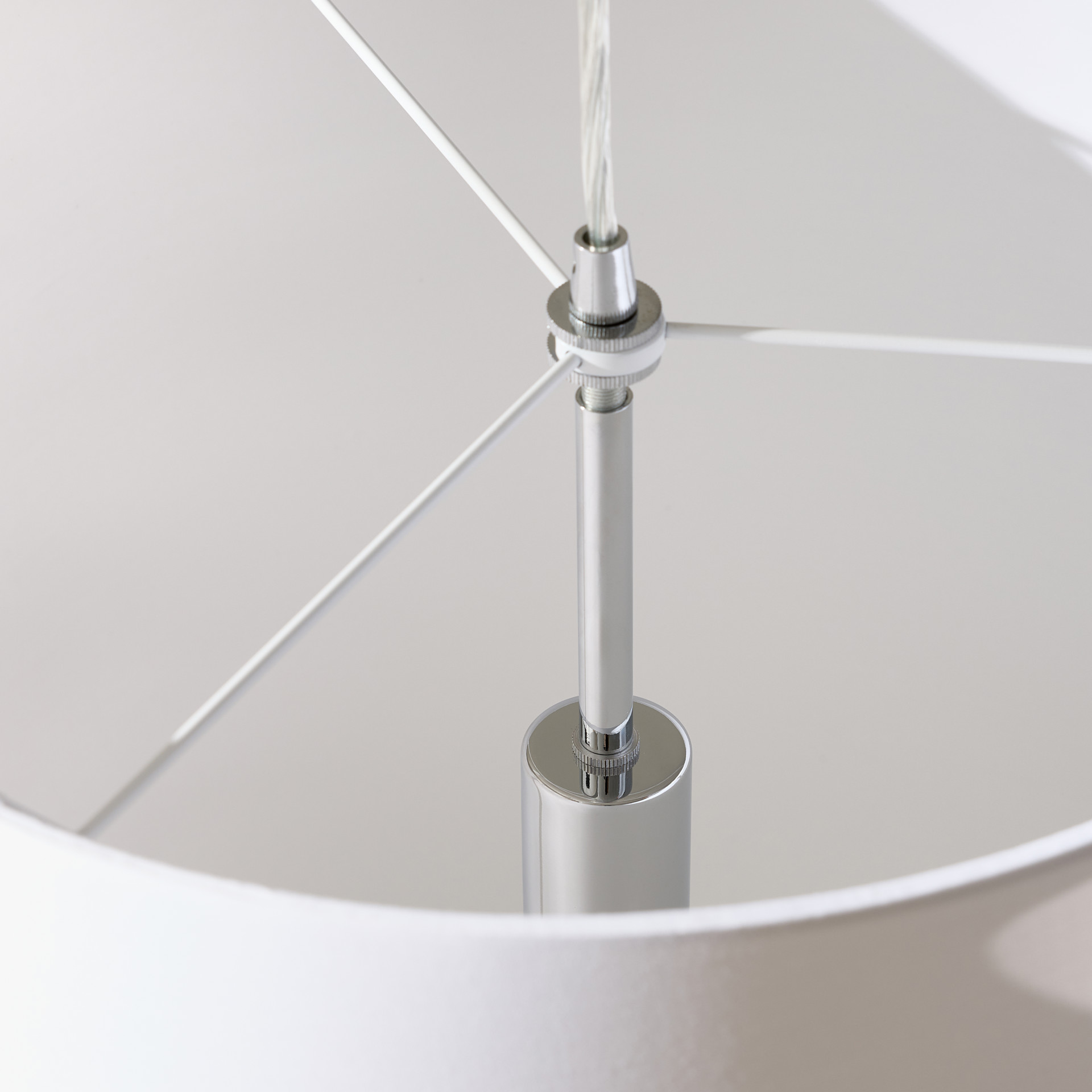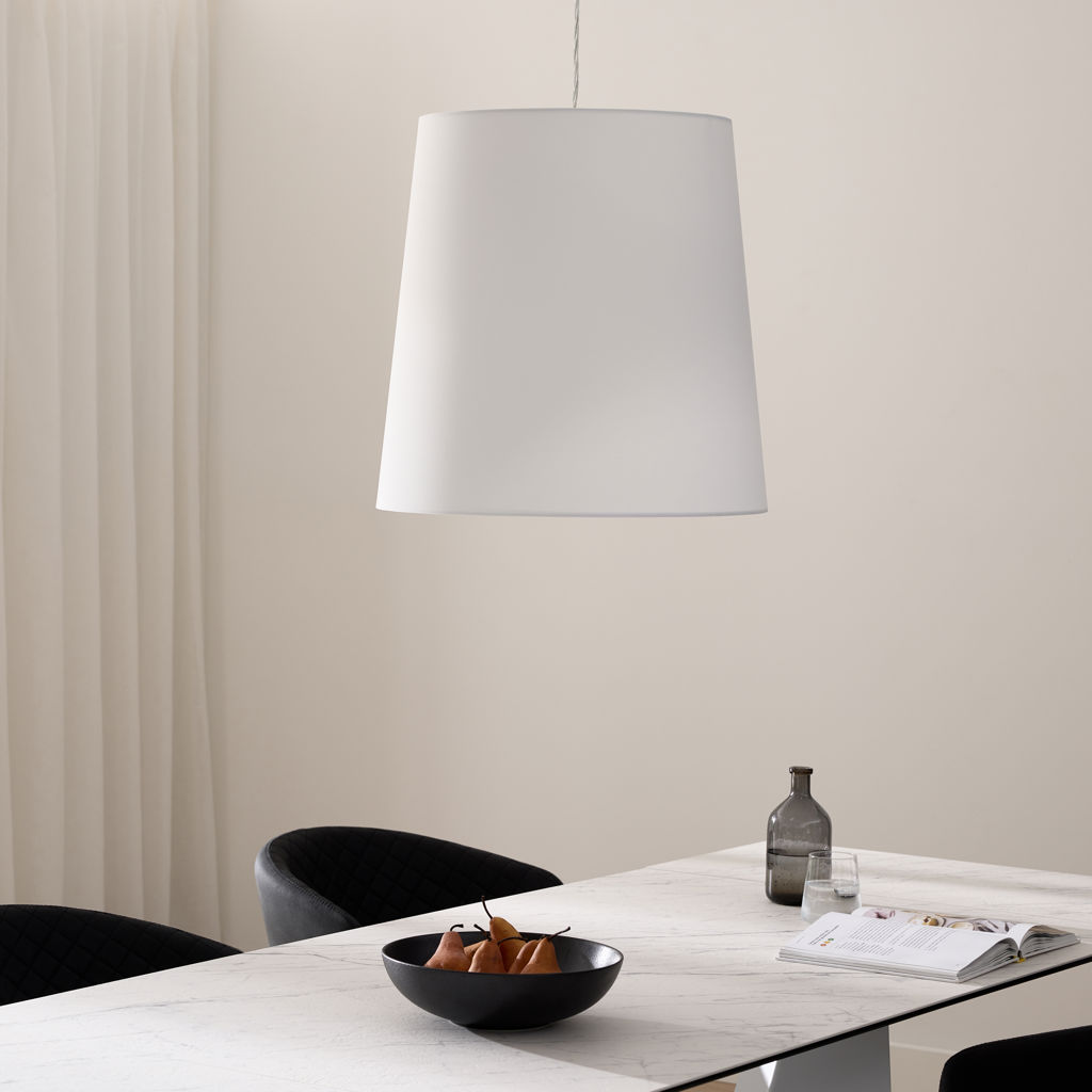 Bring brightness and simplicity to your interior with this pendant light featuring a clean, minimalist design. Its wide white fabric shade diffuses a soft, even light, creating a warm and inviting atmosphere. The classic, timeless silhouette blends seamlessly with any décor style.