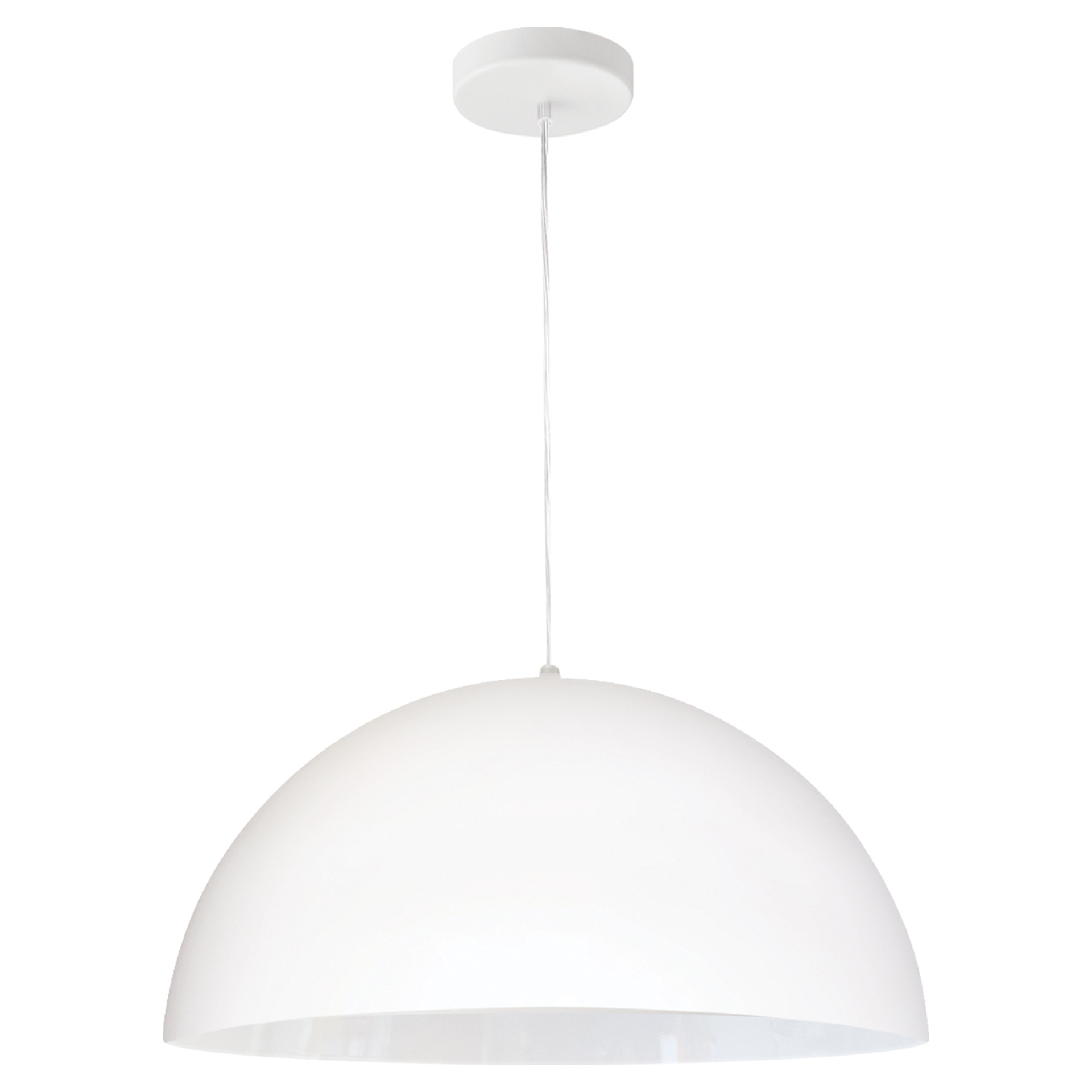 Create a contemporary atmosphere with this pendant light featuring a bold, generously proportioned design. Its wide white dome makes a strong visual statement, while the white interior efficiently reflects light downward. This combination delivers focused, functional illumination while adding character and depth to your space.