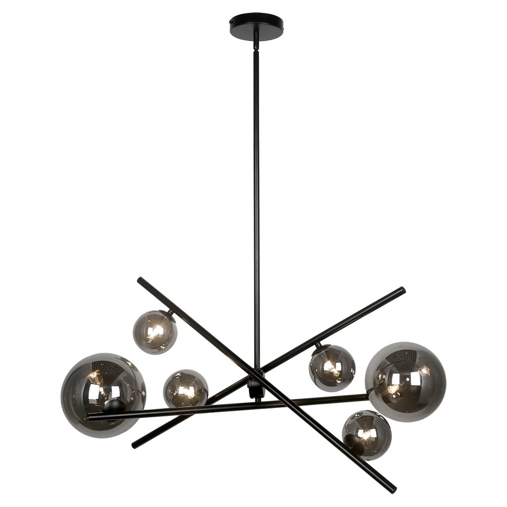 6-bulb horizontal halogen pendant light, matte black with smoked glass