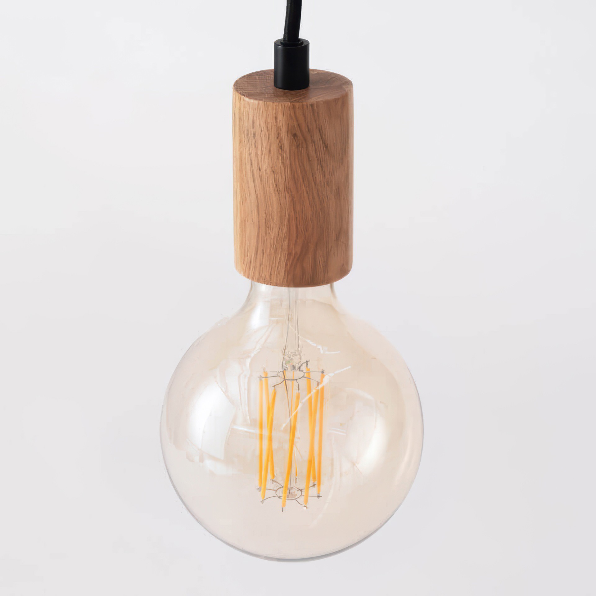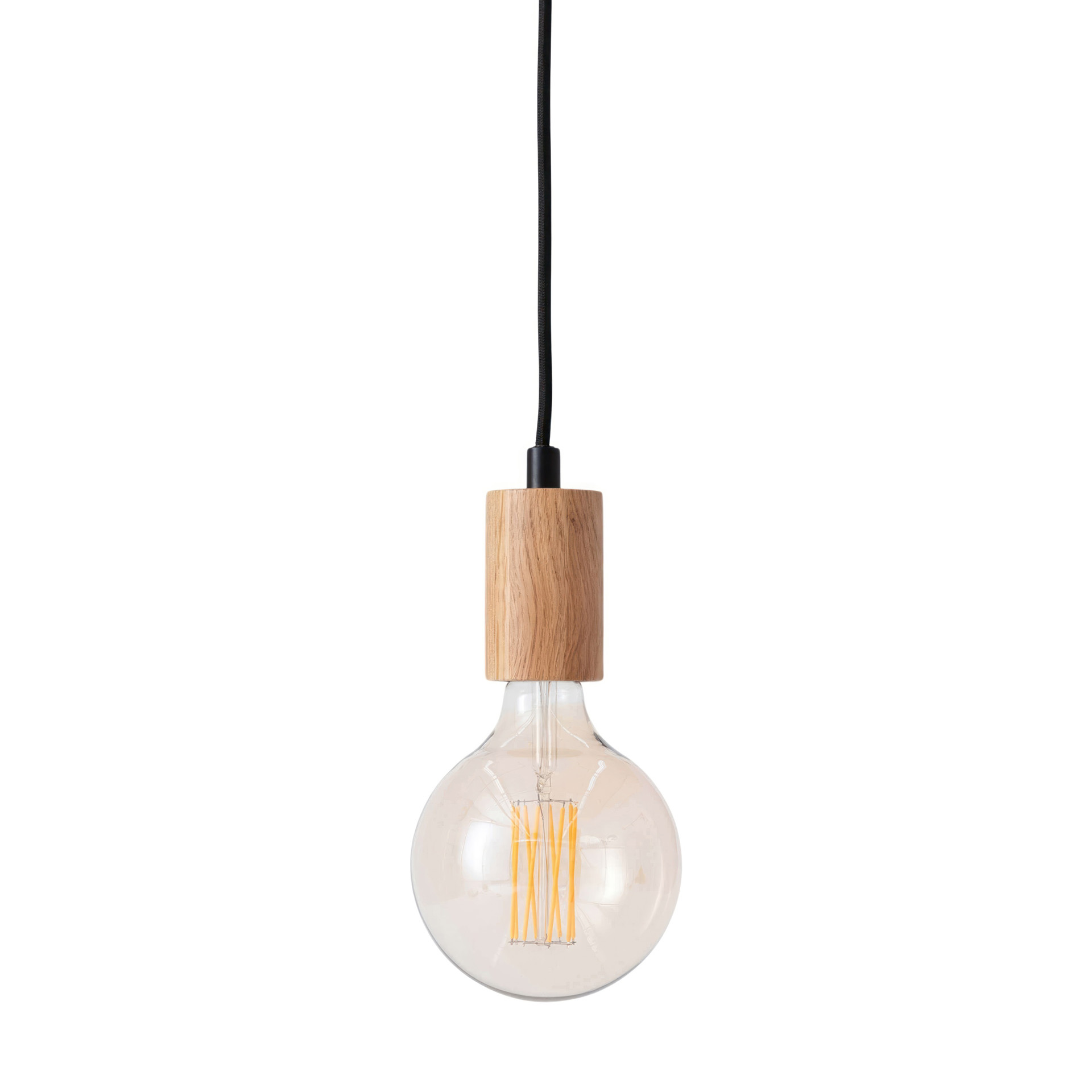Oak gives a natural feel to this otherwise simple light. The exposed bulb allows you to change the look and style of the pendant.