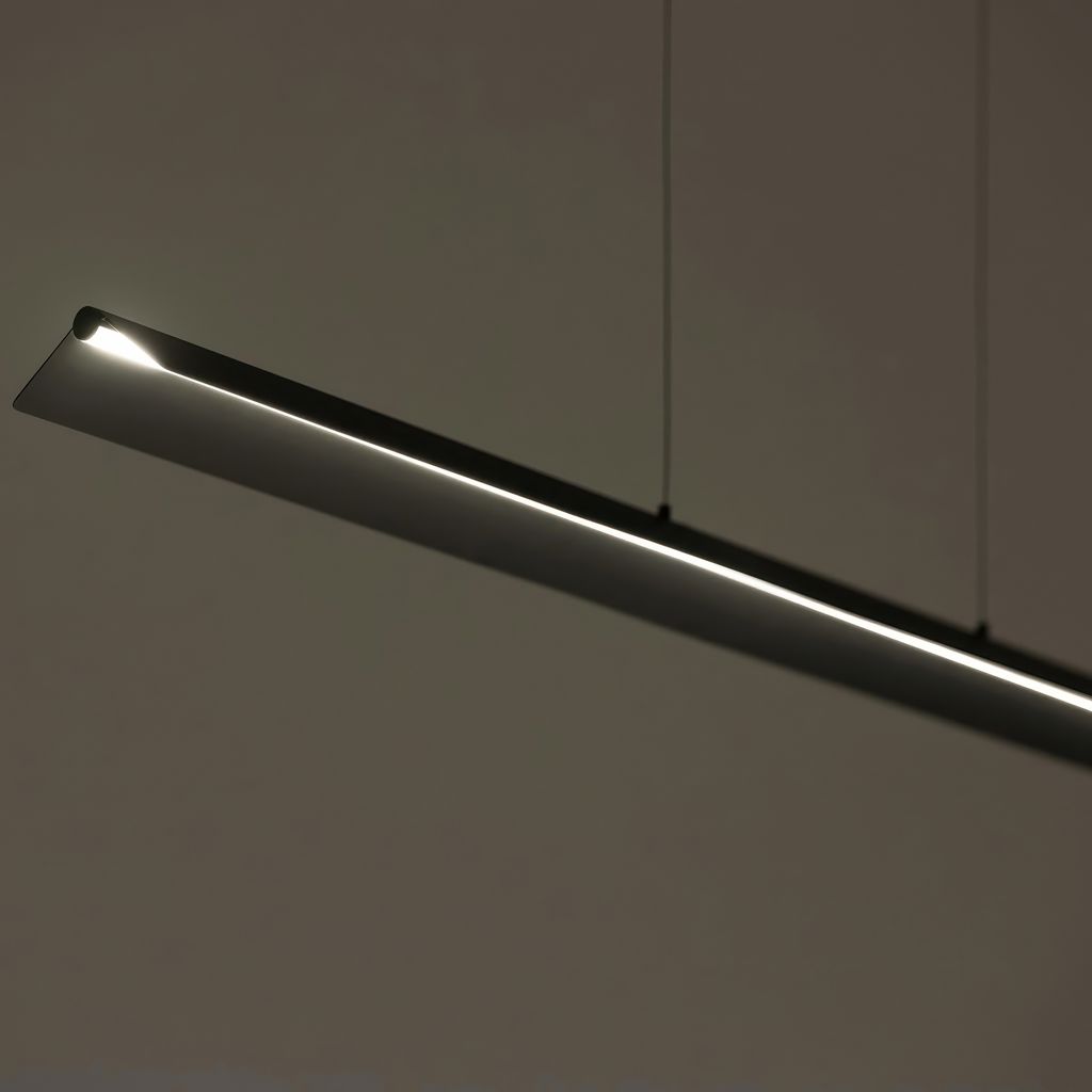 This modern and simple pendant light features a long, anodized aluminum shade that is perfect over a dining table or bar.