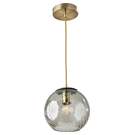 It can be hung by itself or paired with several more to create a stunning effect and add illumination to your space. With a 6' beige fabric-covered cord connecting the shade to the round, antique brass canopy, the height of the light can be adjusted to suit any room regardless of the ceiling height.