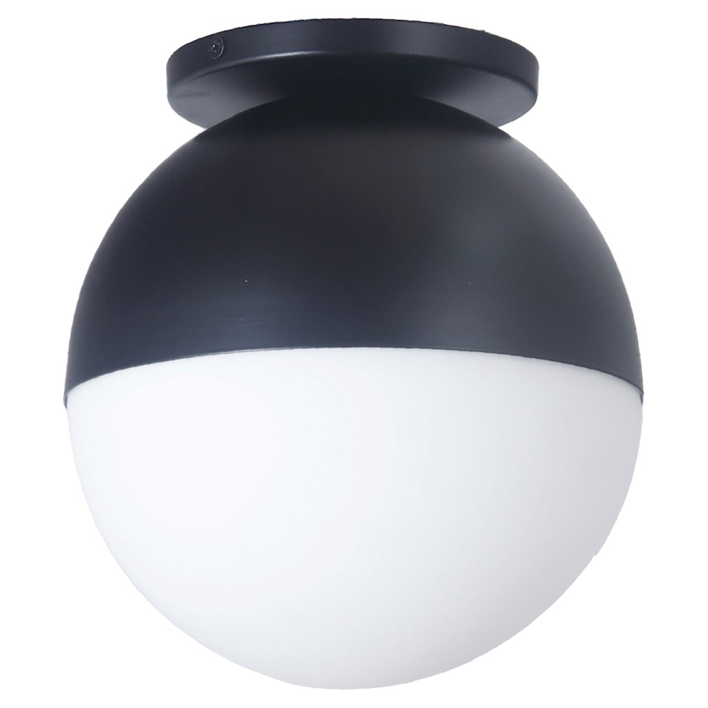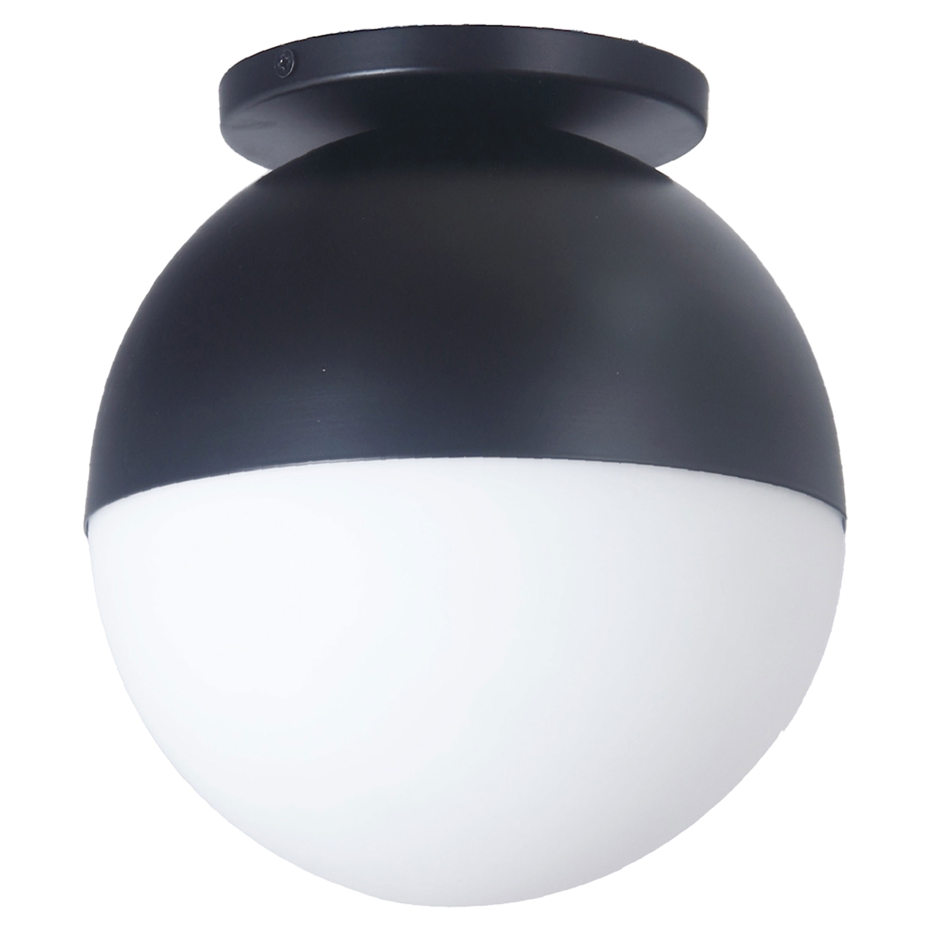 This versatile globe light comes in metal and white glass, and is a fitting addition to the bedroom, hallway, or entryway.