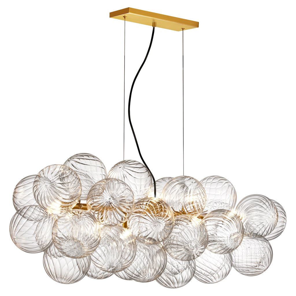 Contemporary Charlize pendant in spiral clear glass for the ceiling with 10 bulb, G9 socket base 40 Watts max dimmable and UL approved for damp with a one year limited warranty.