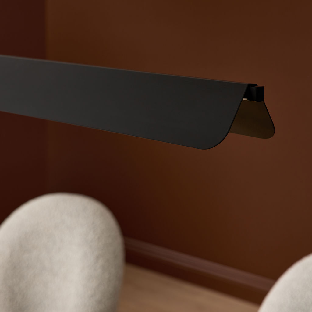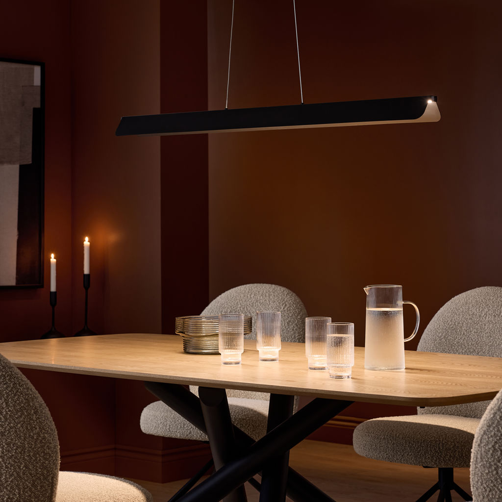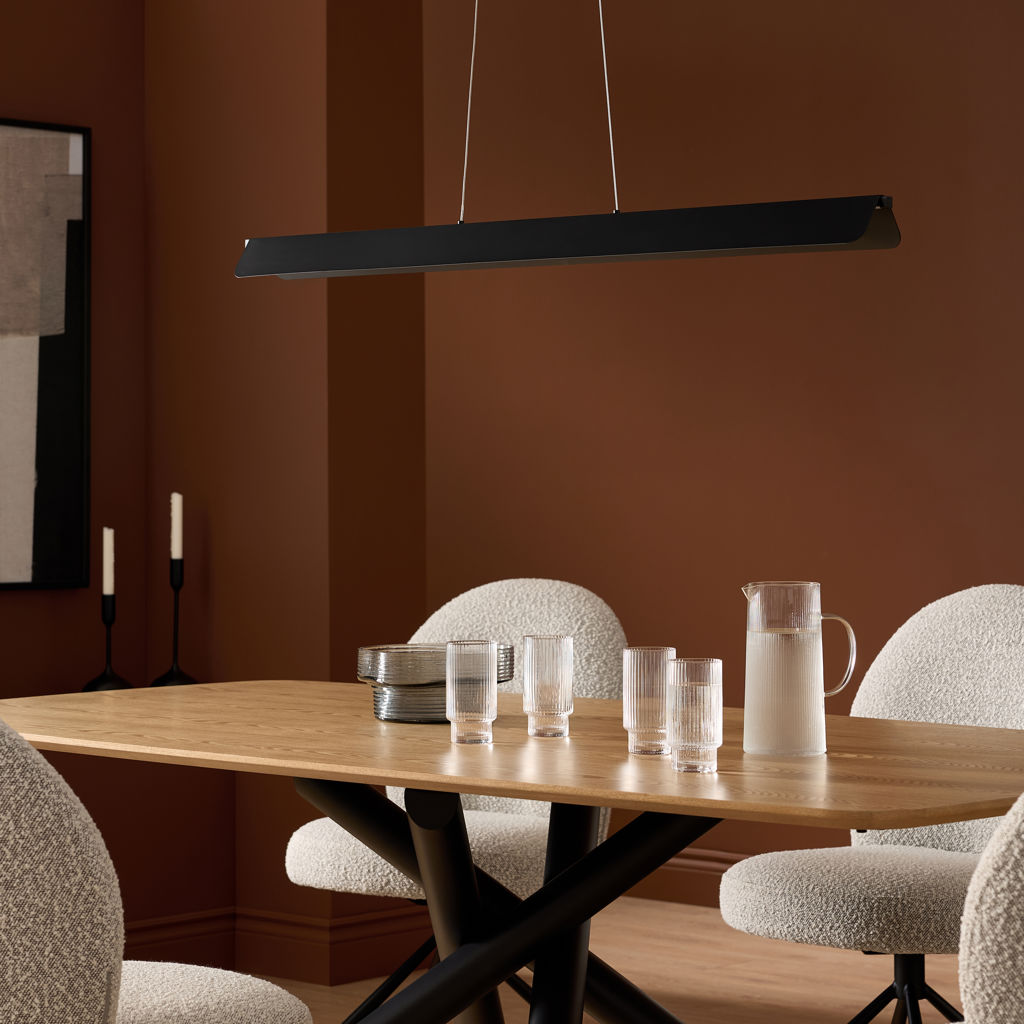 Modern Pamelyn pendant in painted matte black metal for the ceiling with one bulb, DC LED socket base 30 Watts max dimmable and UL approved for damp with a 5 years limited warranty.