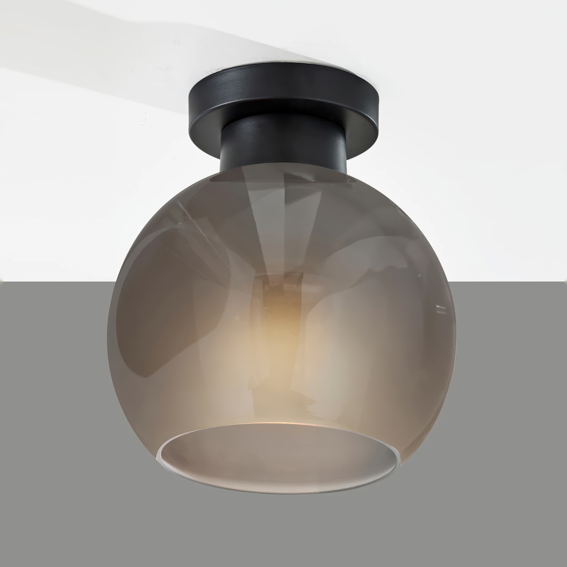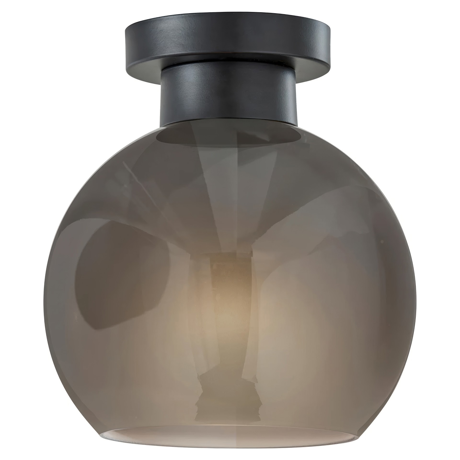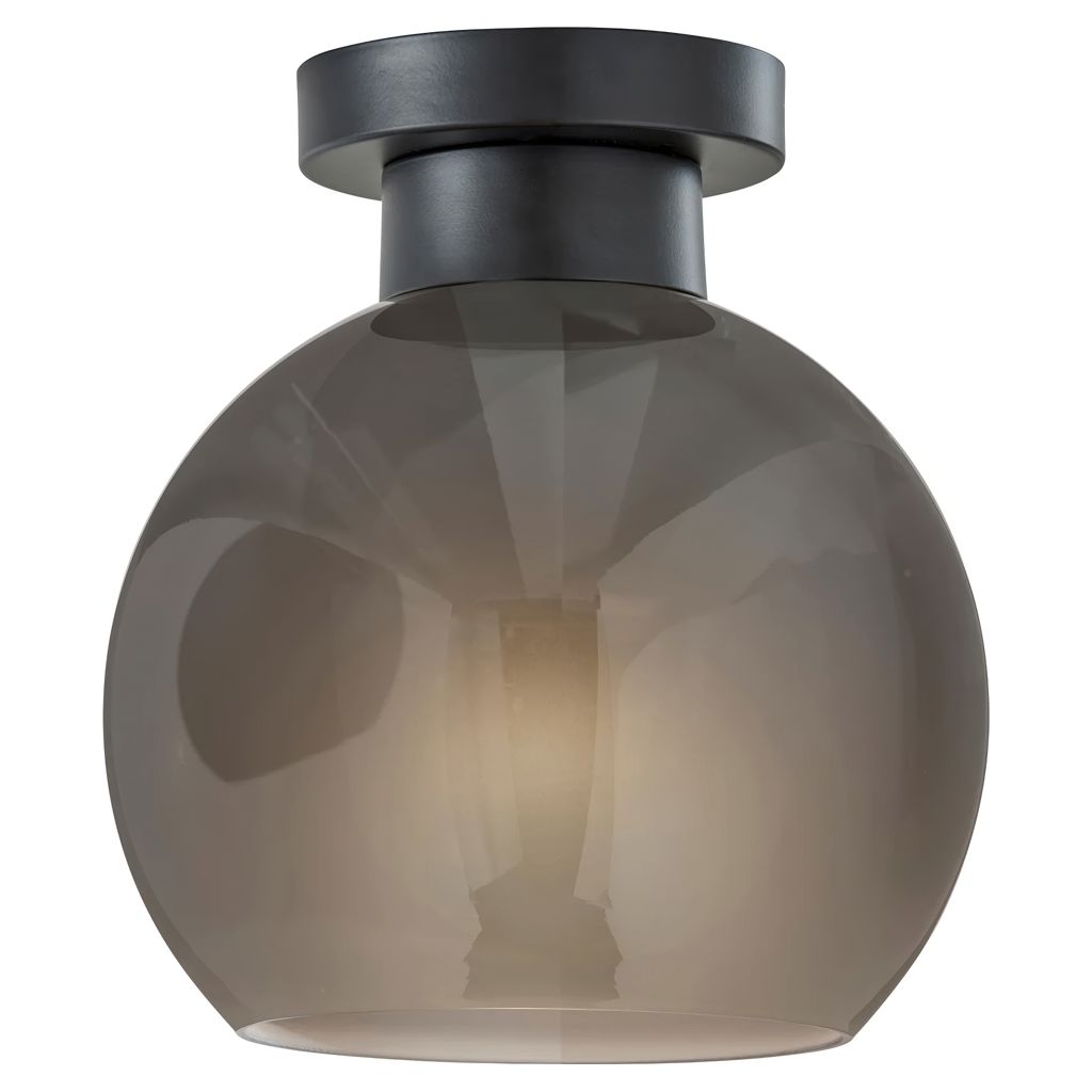 With its black finish and 9-inch diameter globe-shaped smoked glass shade, this flush mount adds a touch of modern sophistication to any room. The glossy exterior of the shade contrasts beautifully with the frosted interior, creating a unique and captivating lighting effect.