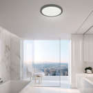 • Contemporary Franchesa flushmount in painted matte black plastic with integrated LED