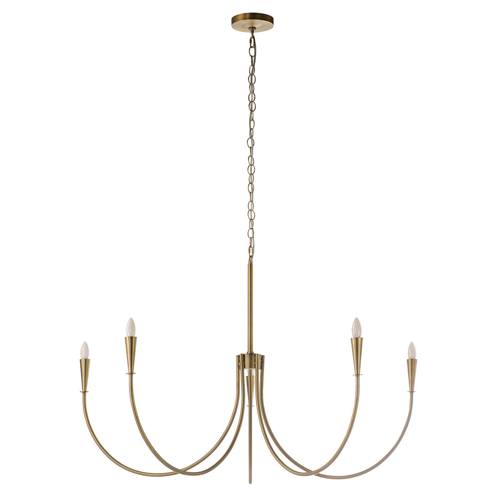 Make a timeless statement in any room of your design project with this gorgeous ceiling fixture. Marrying clean lines with classic materials to create a piece that embodies enduring charm, this dark antique brushed brass-plated chandelier is perfect for a dining room, living room, bedroom, or entryway.