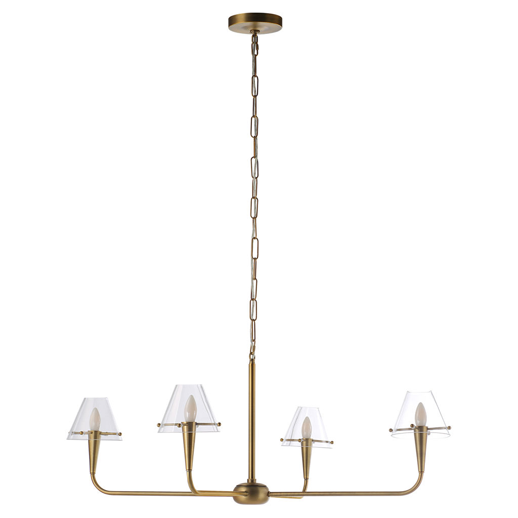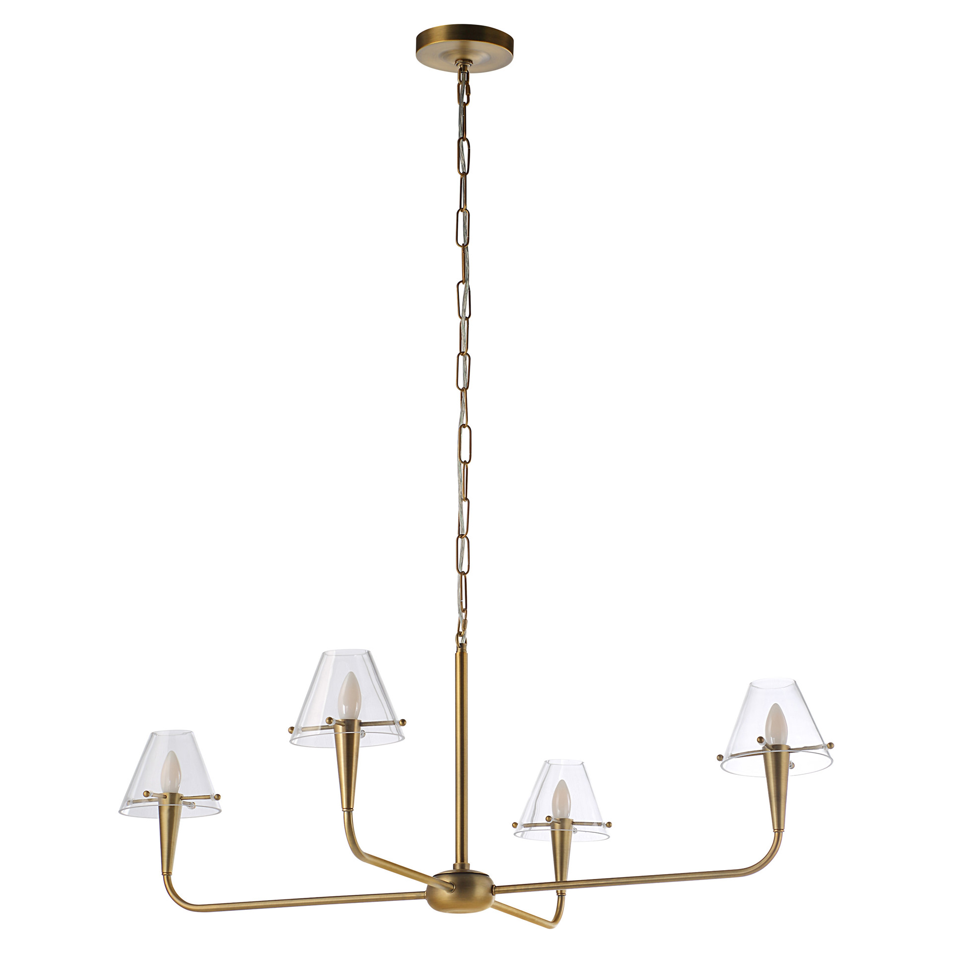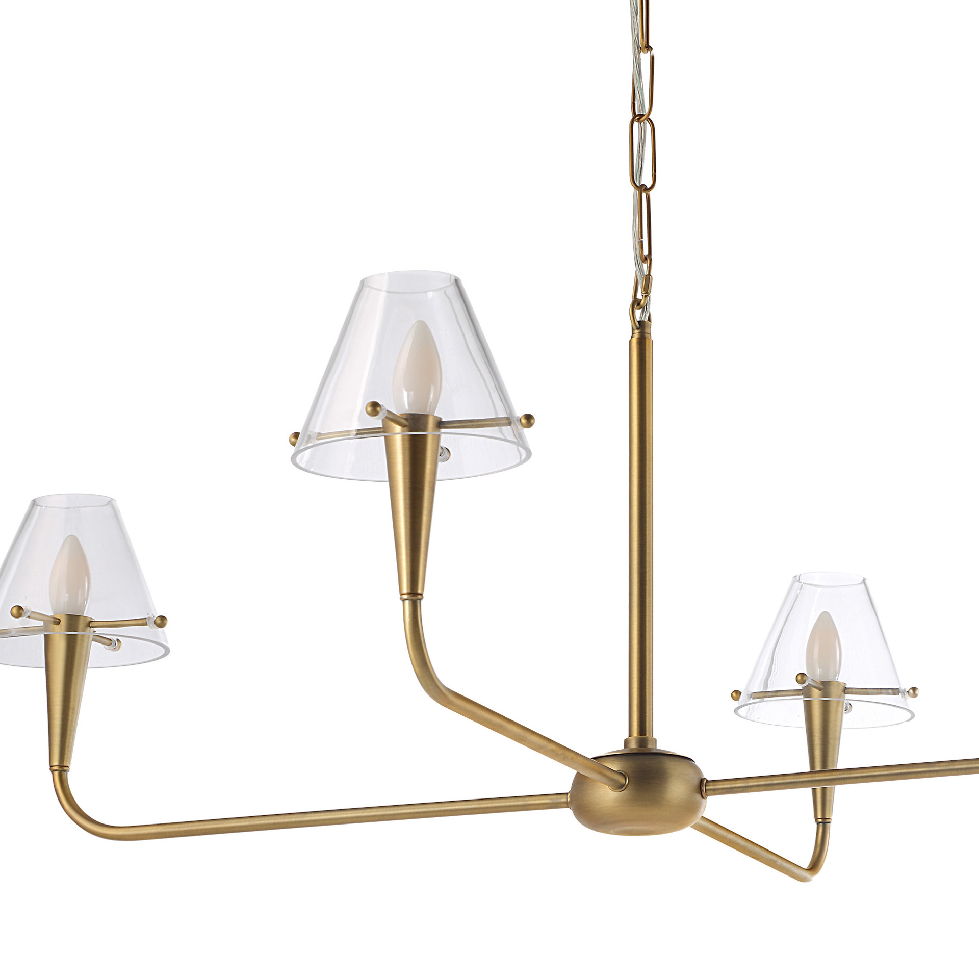 Complete the look of any room with this classically styled chandelier. Boasting a dark antique brushed brass-plated finish, this transitional ceiling fixture holds individual glass shades that shed ambient light for a welcoming glow throughout the space.