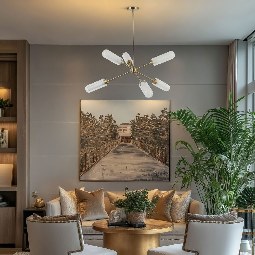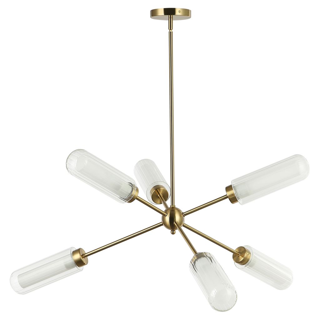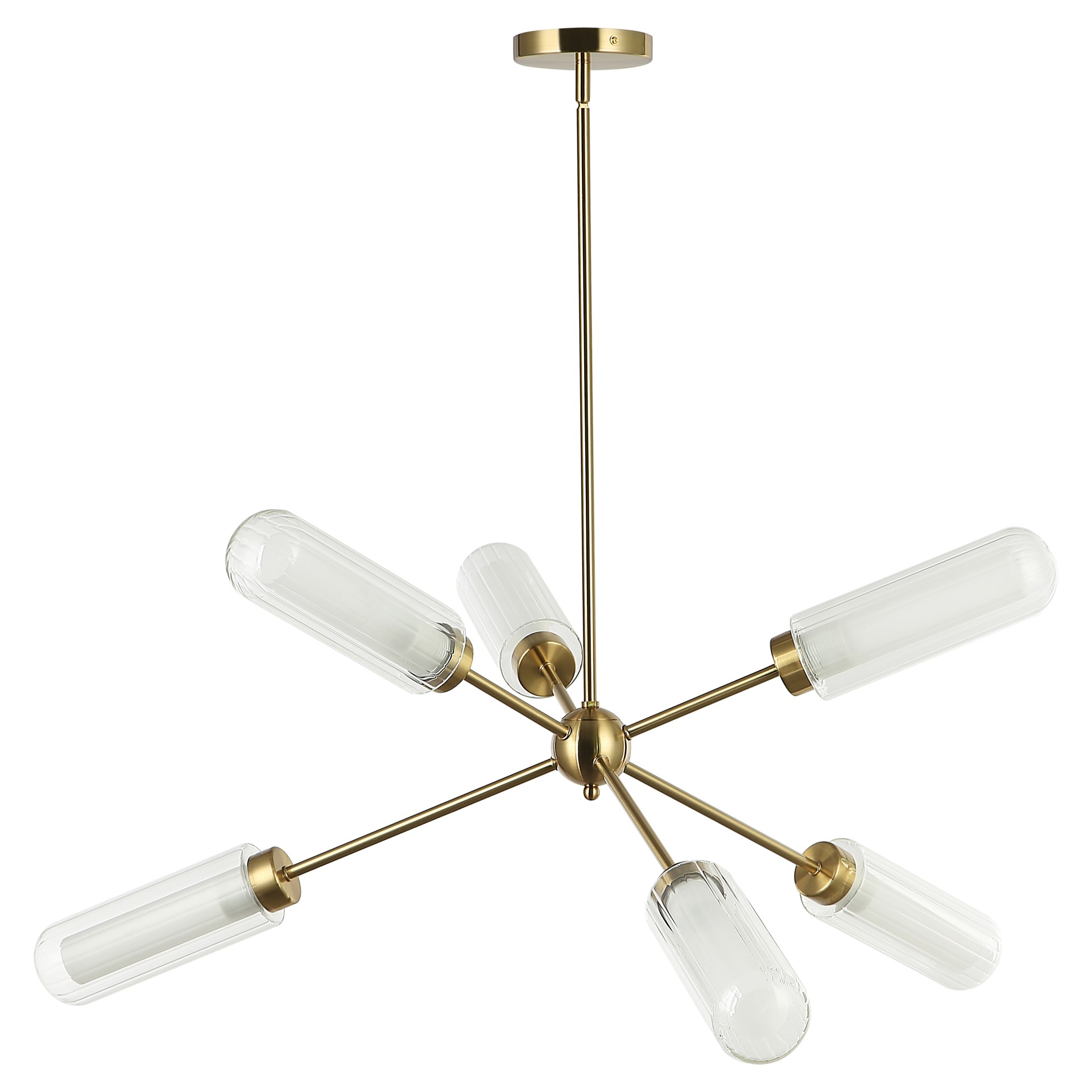 • Transitional Balbina Hanging fixture in galvanized aged brass for the Ceiling with 6 bulb, E26 socket base 60W Watts max