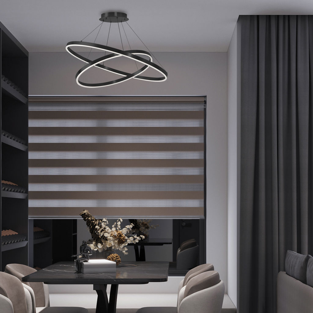 • Modern Circulo Hanging in Painted Matte Black Metal for the Ceiling with 2 bulbs, LED socket base 97Watts max