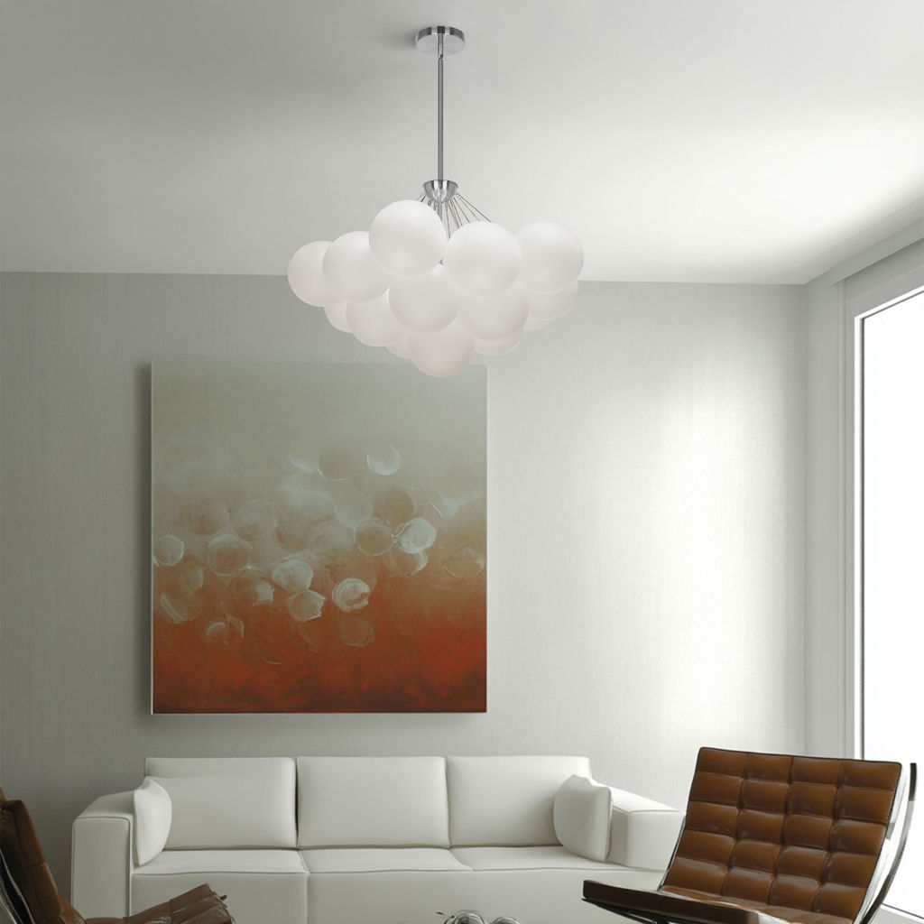• Contemporary Miles Hanging in Frosted White Glass with 4 bulbs, G9 socket base 40W Watts max