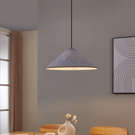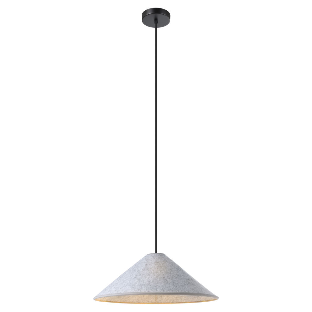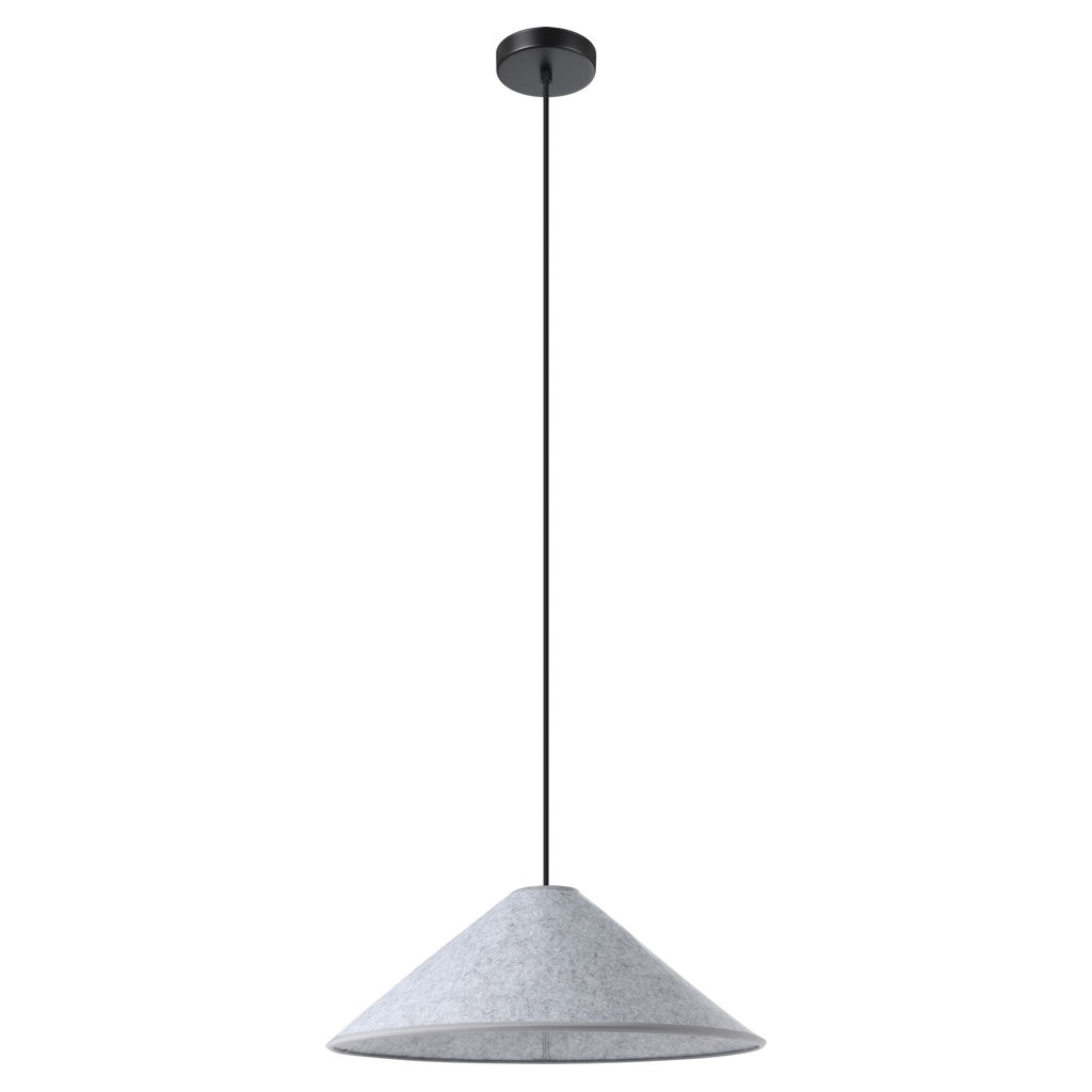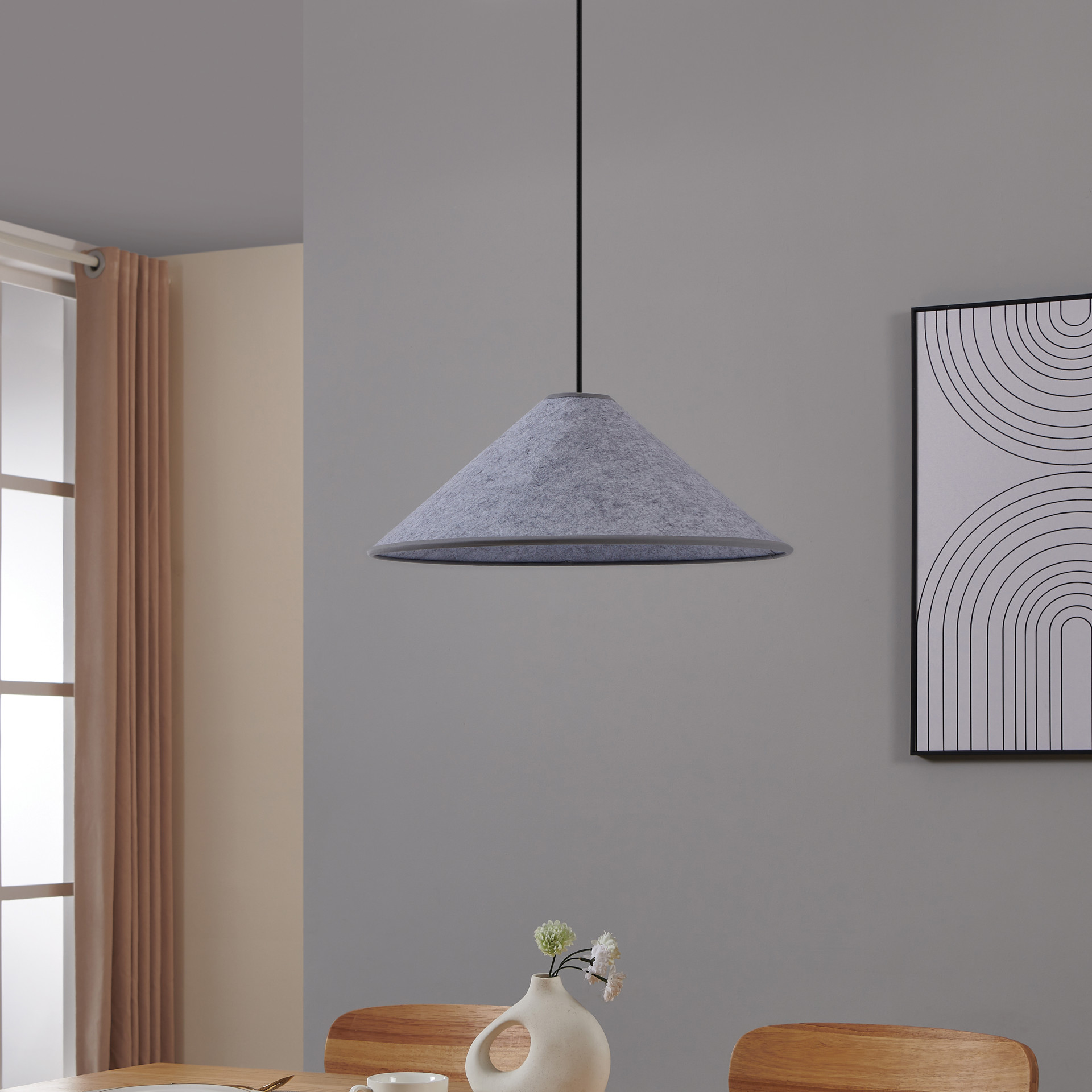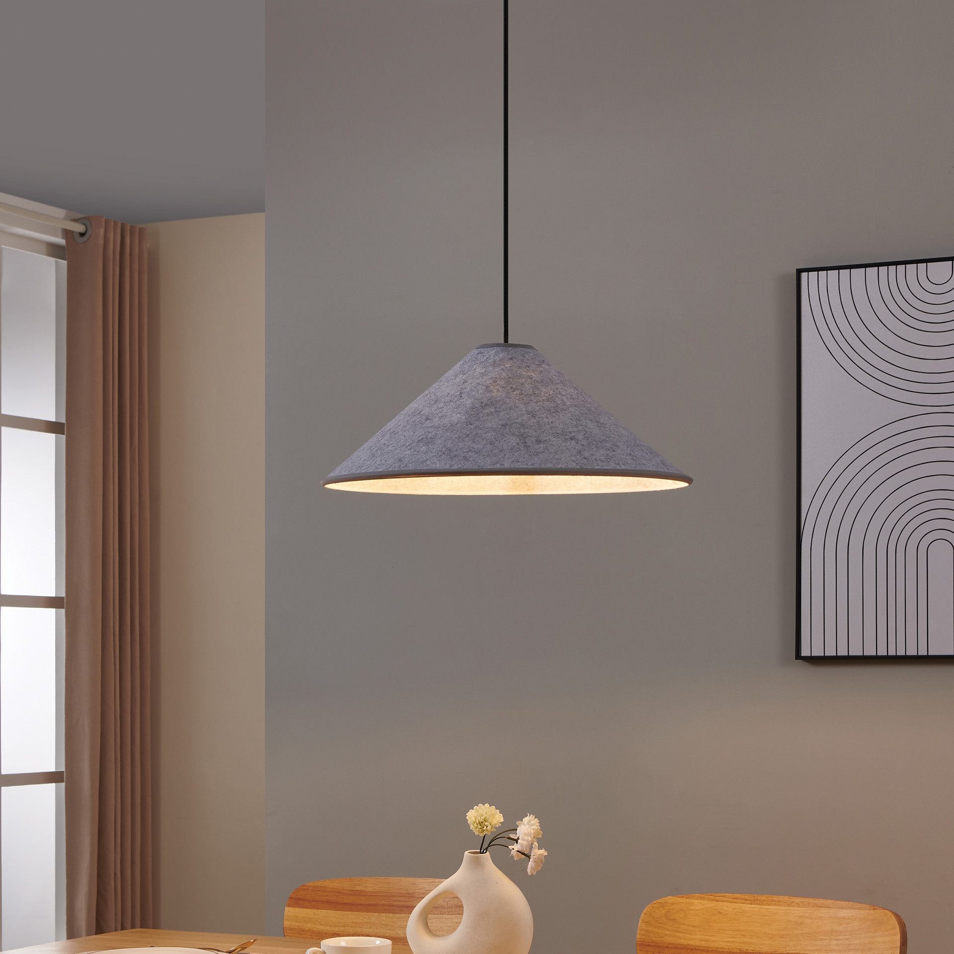 The Alsager single pendant lamp features a conical lampshade made of grey felt.