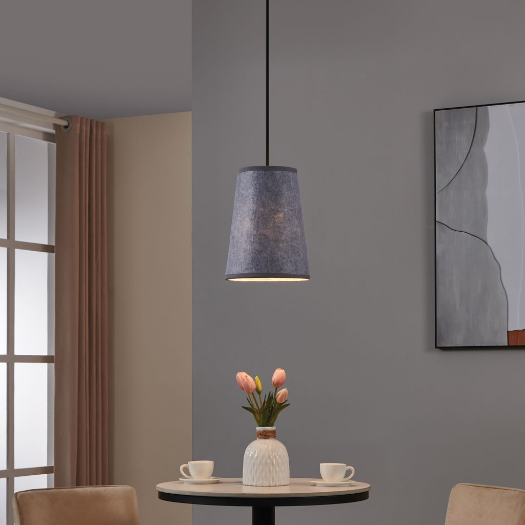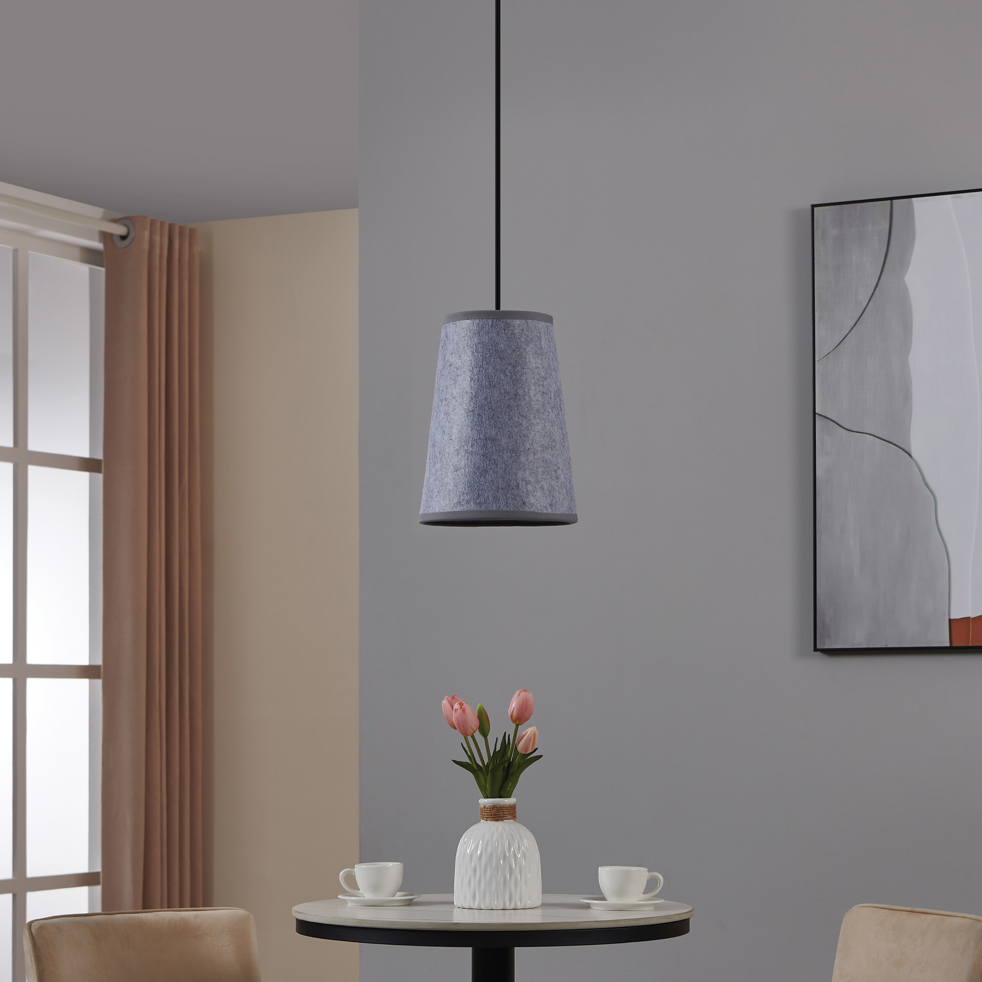 The Alsager single pendant lamp features a conical lampshade made of grey felt.