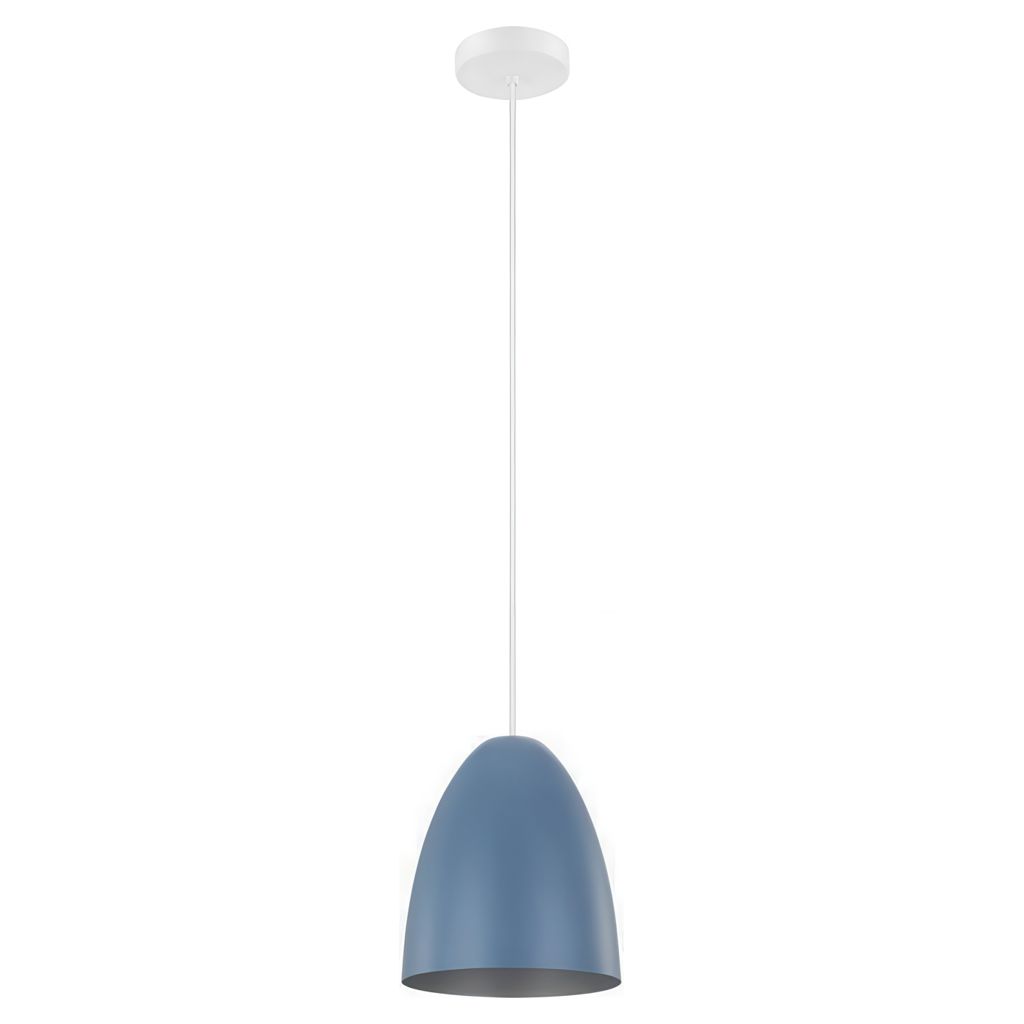 The pastel blue metal shade with a copper interior is an updated version of a traditional dome that directs the light downward to illuminate your space.