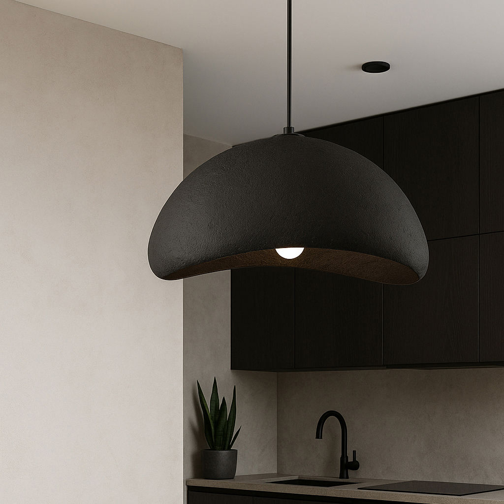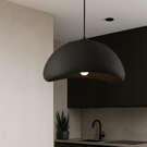 Made of durable polystyrene with a matte black painted finish, this black pendant light is ideal for the kitchen, dining room, entryway, or commercial spaces.