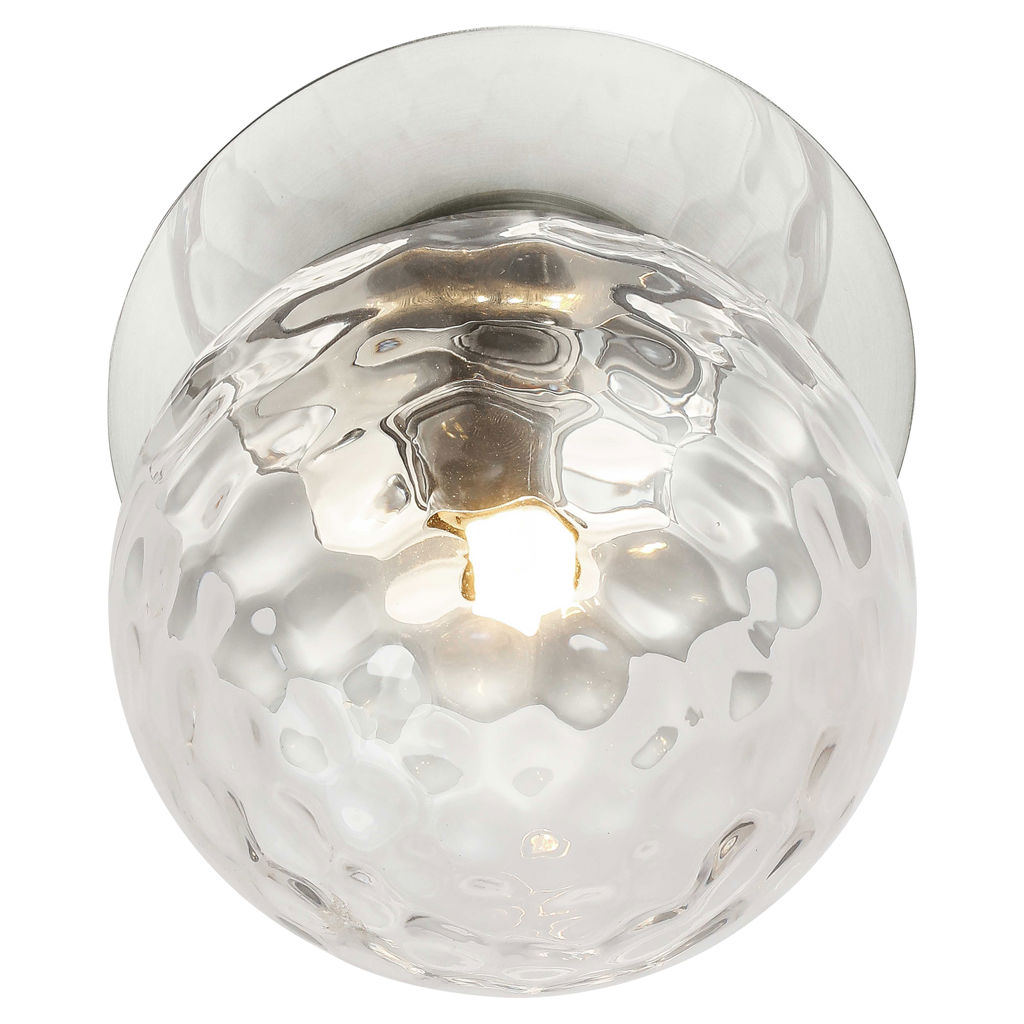 Elevate your space with this stylish 1-light wall sconce featuring a chrome finish and a textured clear hammered-glass shade.