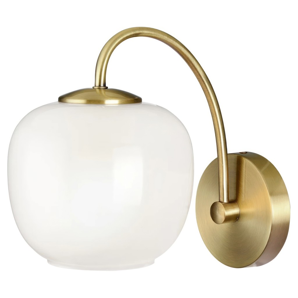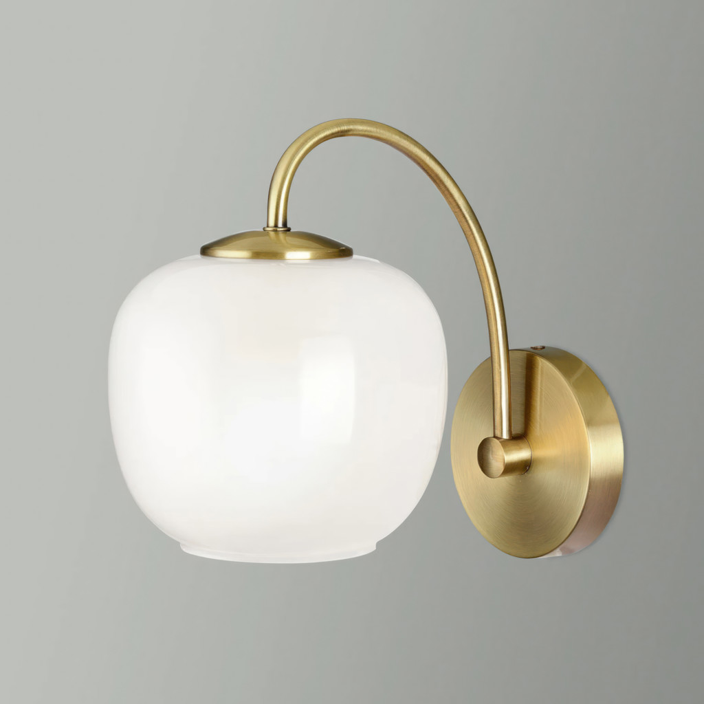 This wall lamp boasts an Antique Brass finish that infuses vintage charm and elegance into your decor. Its glass shade is a study in contrast, featuring a glossy white exterior for a contemporary twist, while the frosted interior diffuses a soft and inviting glow.