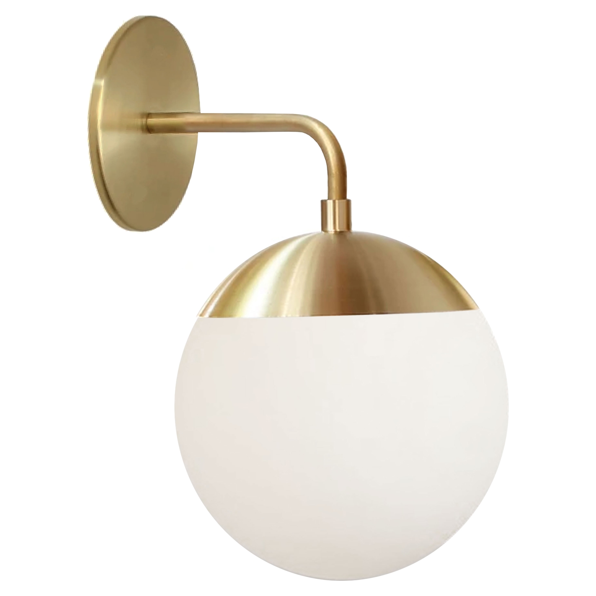 The metal base in matte black, polished chrome or aged brass finish comes in a variety of linear configurations, some straight and others curved. Lighting emanates from round glass housing in a soft opal finish.