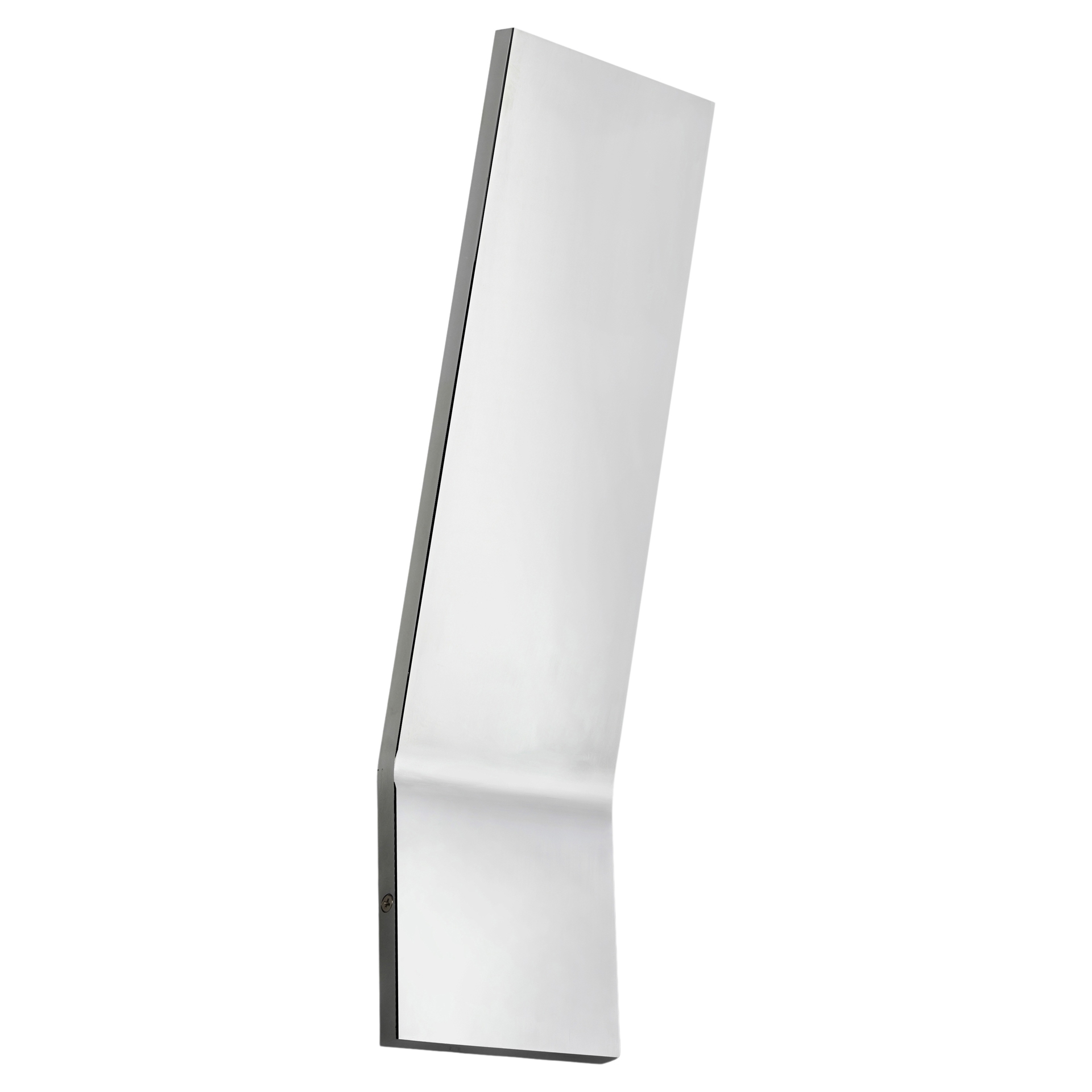 LED fixtures produce light at up to 90 percent better efficiency than incandescent lighting. The flat metal frame creates the look, mounted on the wall, but angled slightly away from it.