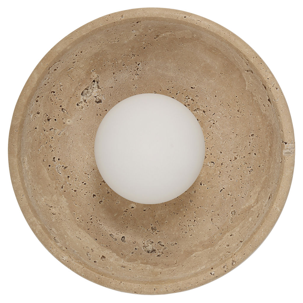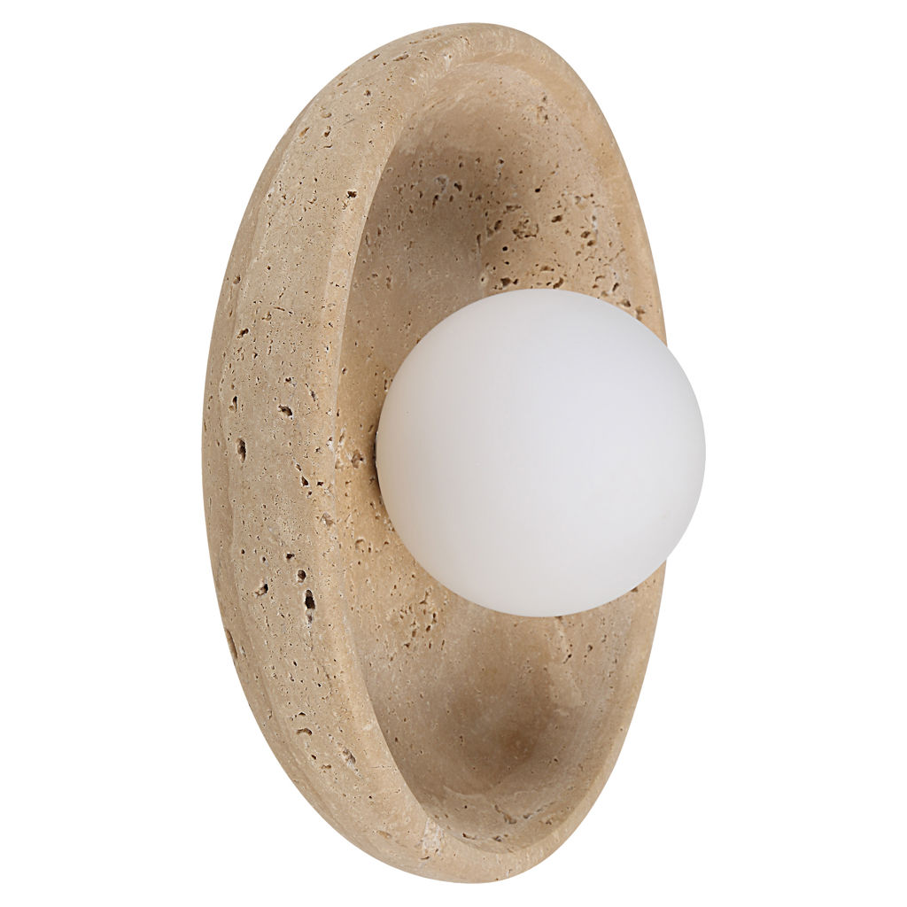 Marrying a modern minimalist silhouette with timeless finishes like antique bronze and travertine marble, this wall sconce is poised to bring statement-making style to any interior.
