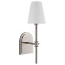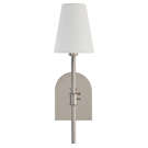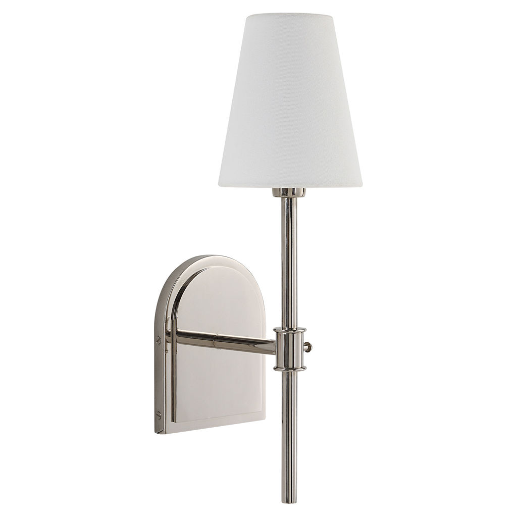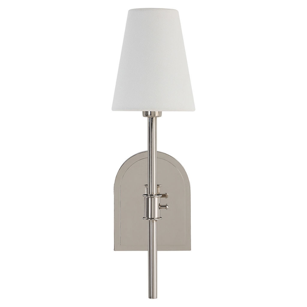Crafted with a dark antique brushed brass plated finish and a tapered off-white linen shade, this wall sconce gets a modern update with an arched backplate to deliver an aesthetic that is both timeless and on-trend.