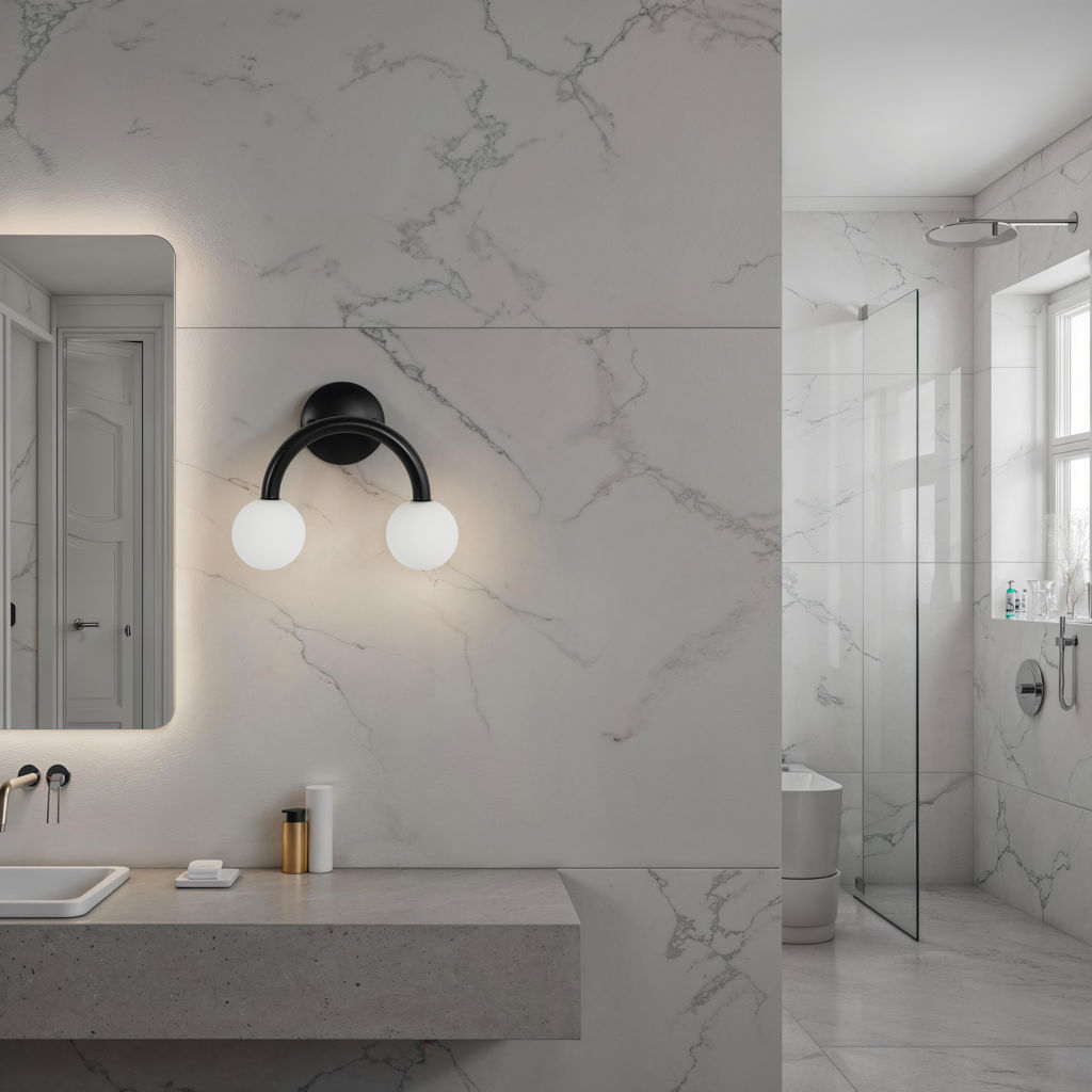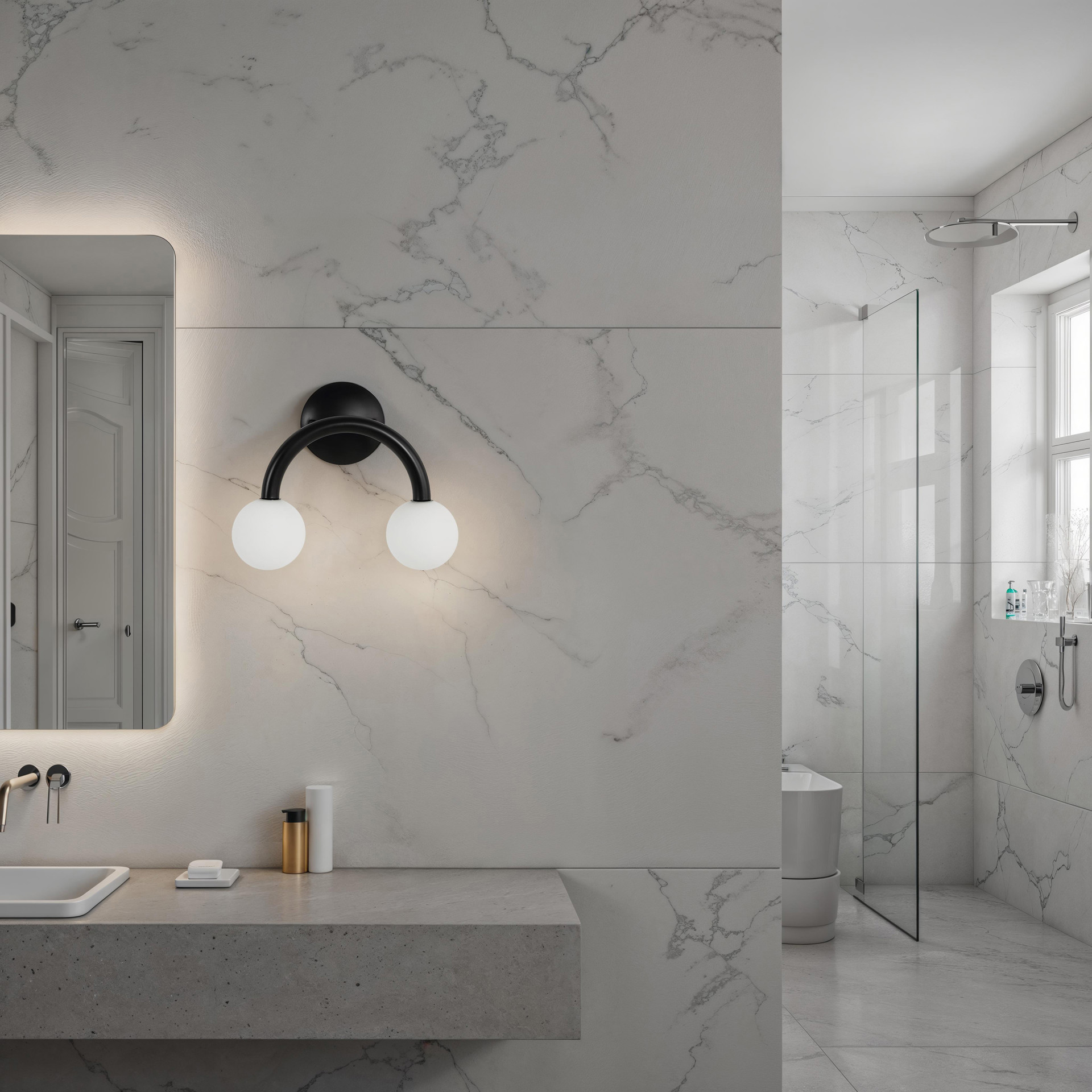 A stylish choice for contemporary interiors, this double-light wall sconce will bring a whimsical touch to your project.