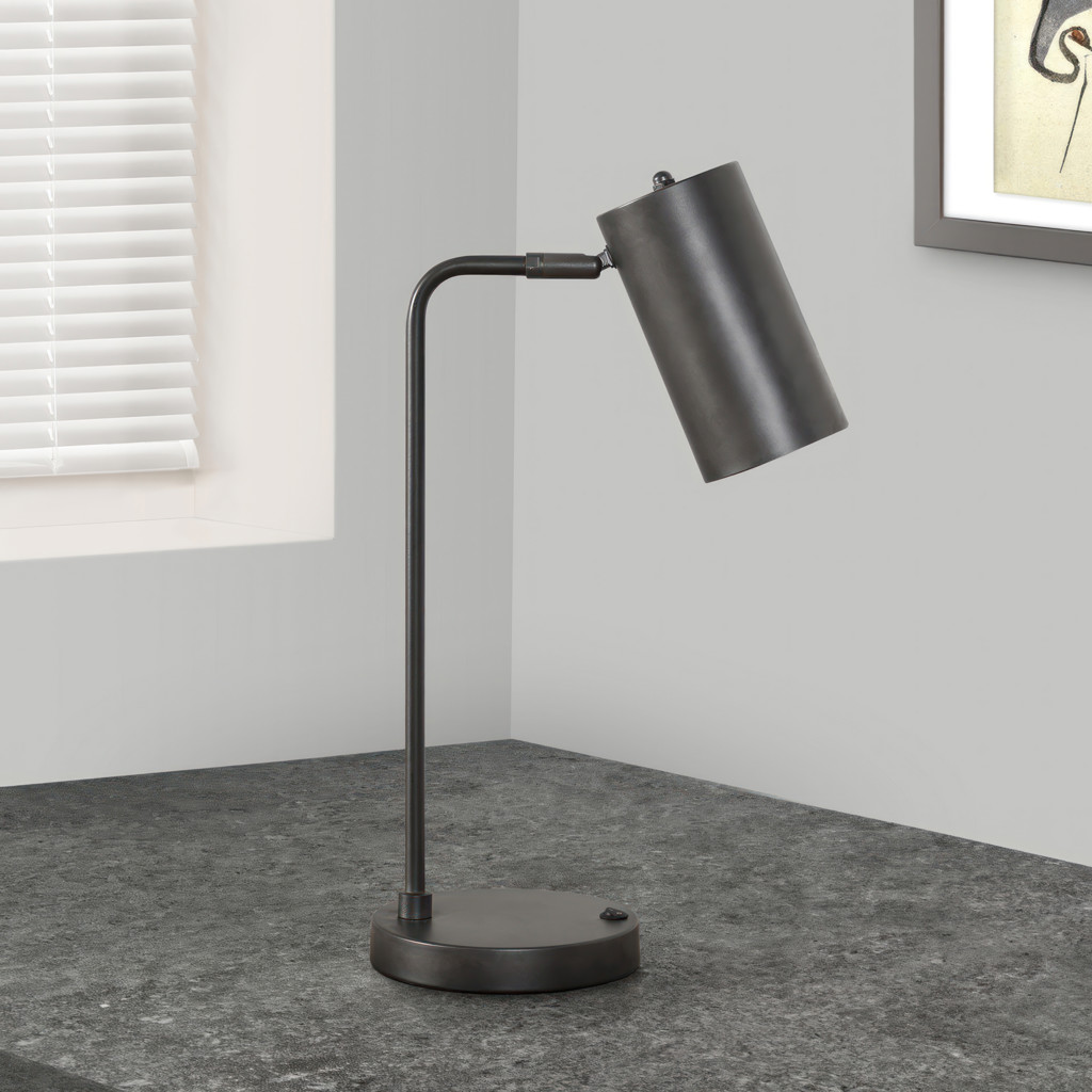 If you are looking for a stylish and trendy way to brighten up your office, livingroom, or bedroom, then this modern 18''h table lamp with a grey metal base and adjustable grey shade is exactly what you need.
