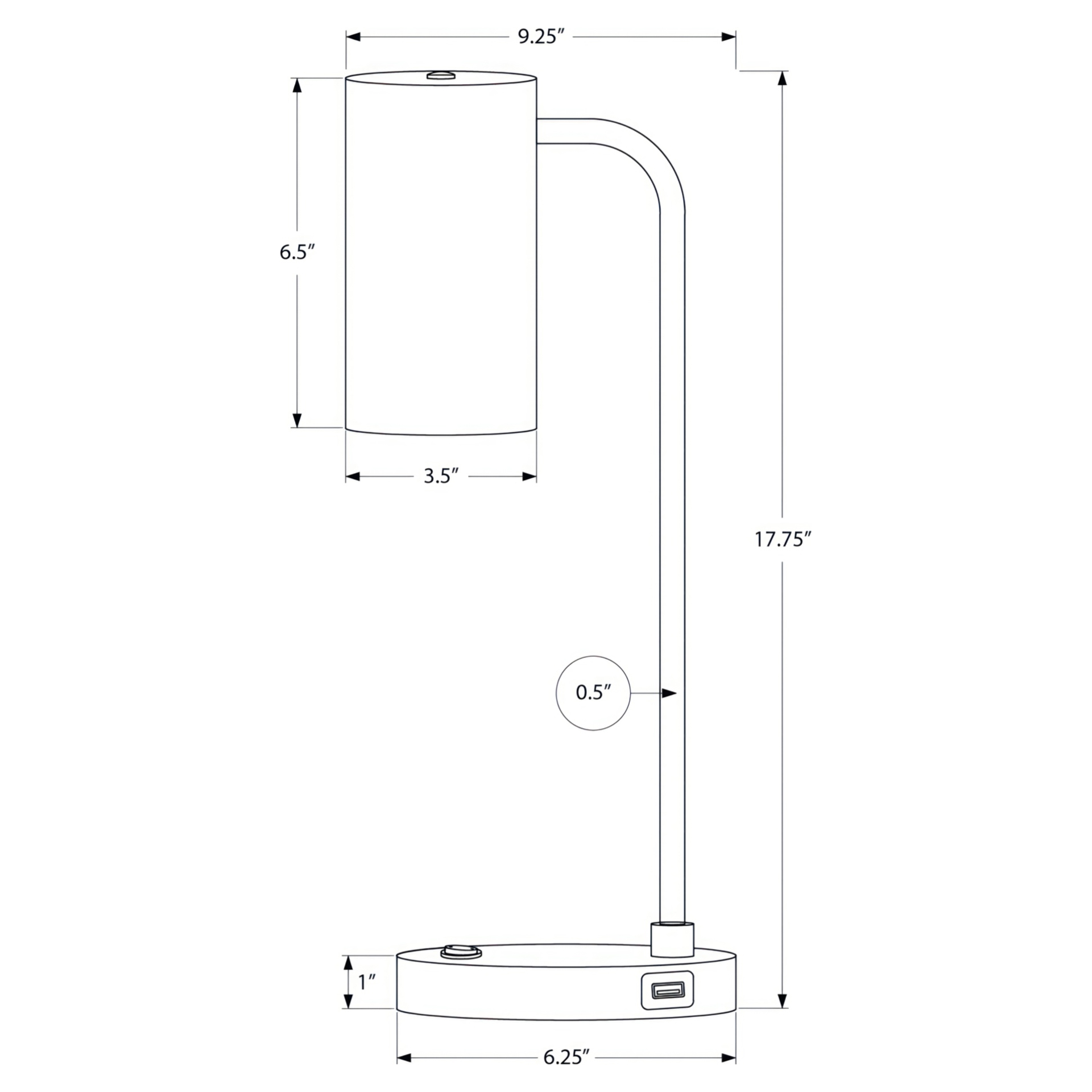 This mid-century inspired task lamp is equipped with a USB port and a rocker switch embedded in the base and supports a maximum 25W/120V bulb (not included), making it easy to illuminate reading material or add some ambient light in a room.