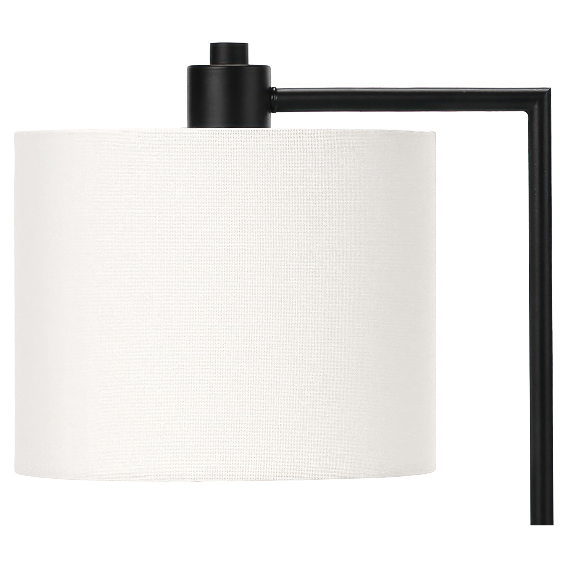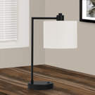 Great for brightening up any office, living room, or bedroom, this contemporary accent lighting sits on a sleek, black metal body with a slender arm and toped with an ivory fabric shade giving off a soft glow.